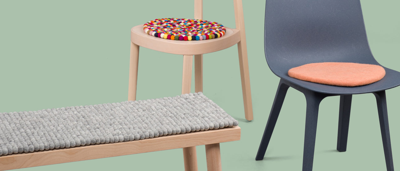 Dzięki wygodnym pokrowcom na siedzenia myfelt krzesła i siedzenia można w sposób zrównoważony ulepszyć. Zarówno płaskie, jak i atrakcyjne w kształcie filcowych kulek, stanowią praktyczny dodatek do klasycznych krzeseł biurowych. Podobnie jak w przypadku wszystkich innych produktów myfelt, projekt i wykonanie spełniają najwyższe standardy. Grupy krzeseł w gabinecie lub małym salonie konferencyjnym można w praktyczny sposób upiększyć miękkimi poduszkami na siedziska. Oprócz standardowych wymiarów, filcowe pokrowce na siedzenia można również dostosować do dowolnego, indywidualnego rozmiaru.