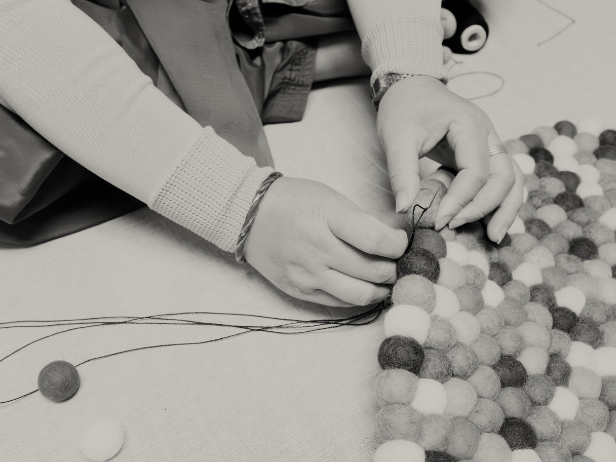 Filc lub każda pojedyncza kulka filcowa jest ręcznie w kilku etapach nadawana z najwyższą precyzją do ostatecznego kształtu. W przypadku dywanów z filcowymi kulkami myfelt gotowe kulki filcu są łączone ze sobą za pomocą specjalnie opracowanego procesu wiązania, który umożliwia również używanie dywanu po obu stronach. W ten sposób powstaje produkt o najwyższym kunszcie: na przykład dywan z aż 50 000 indywidualnie uszytych ręcznie filcowych kulek.