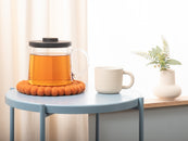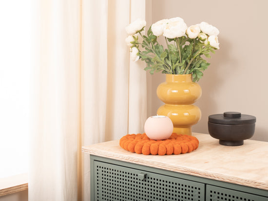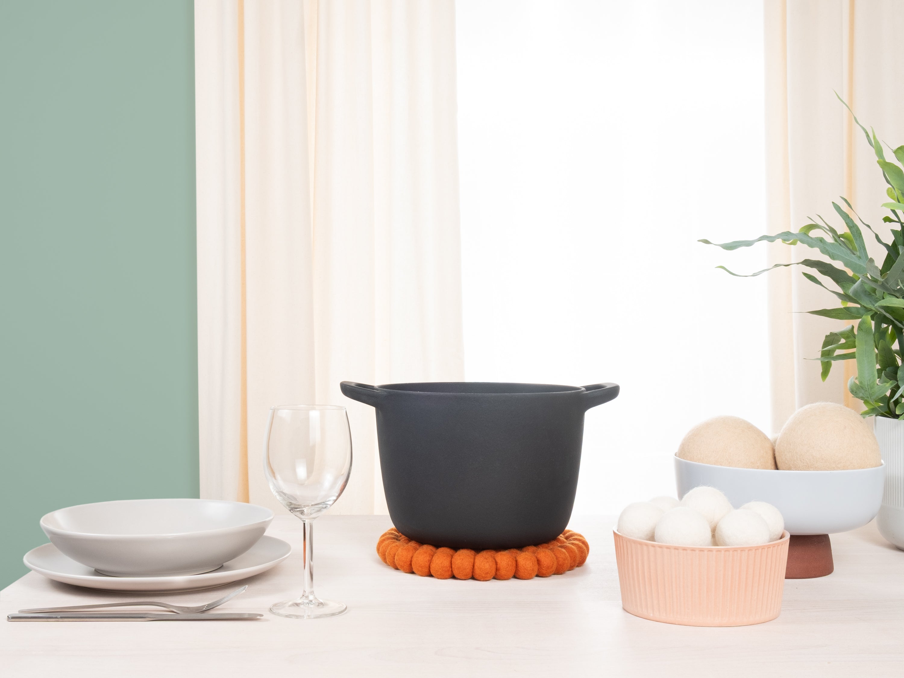 Okrągła, pomarańczowa podstawka pod garnek z czystej wełny dziewiczej | myfelt