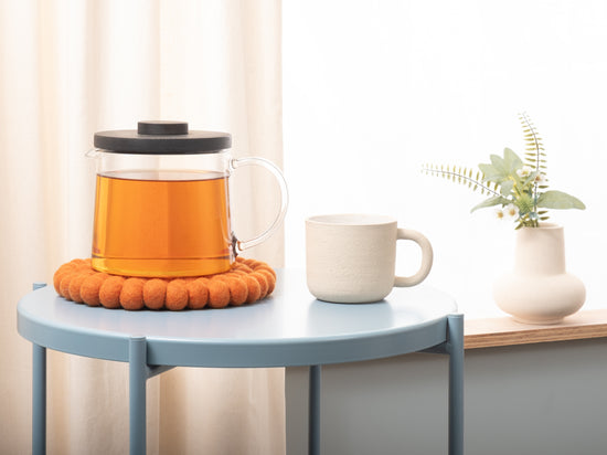Podstawka Afra w kolorze pomarańczowym łączy funkcjonalność z uroczym wyglądem. Wytrzymała, odporna na ciepło, wodę i zabrudzenia oraz dwustronna. Wykonana z czystej wełny dziewiczej, ręcznie w Nepalu w uczciwych warunkach.