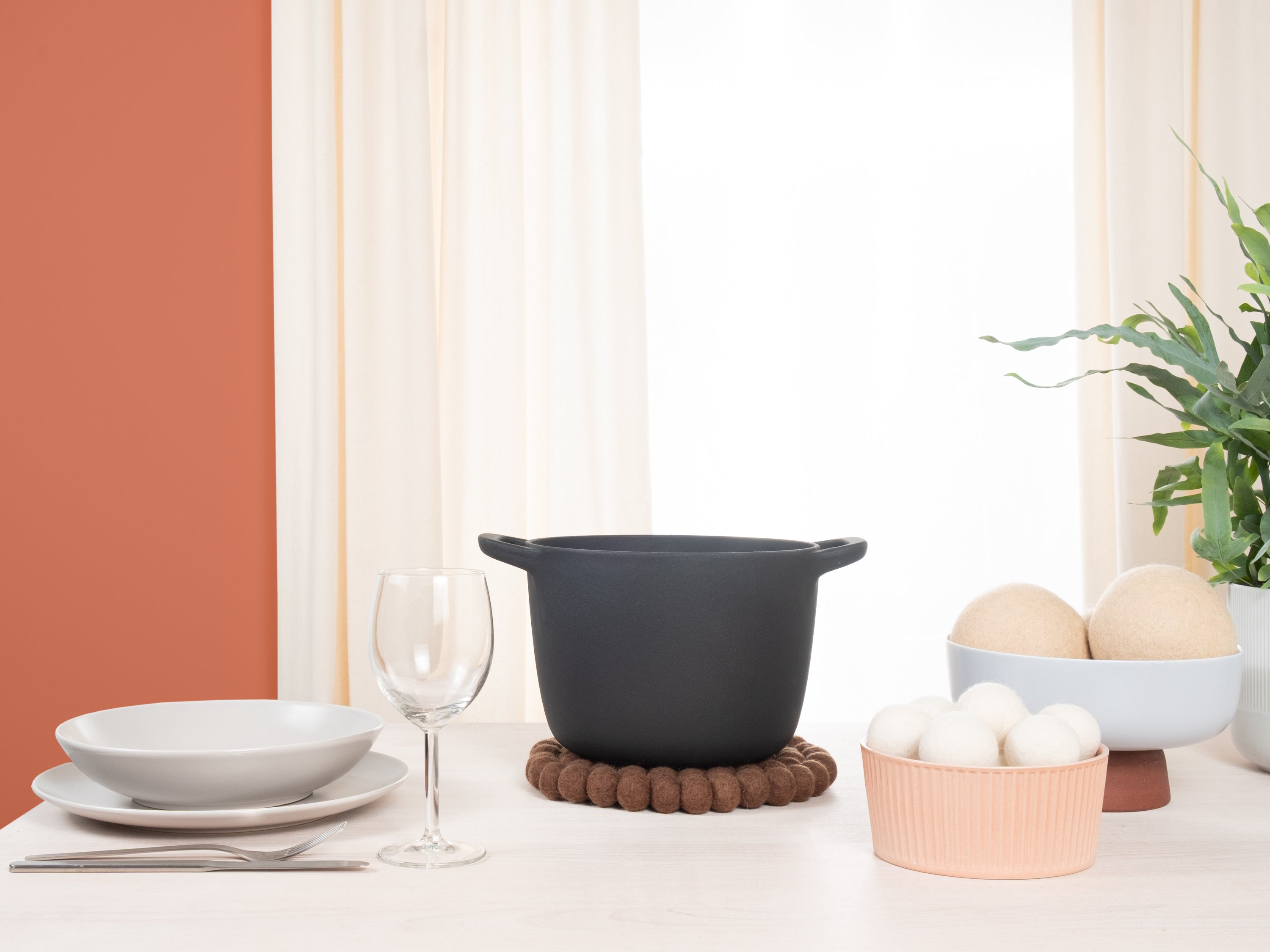 Okrągła, brązowa podstawka pod garnek z czystej wełny dziewiczej | myfelt