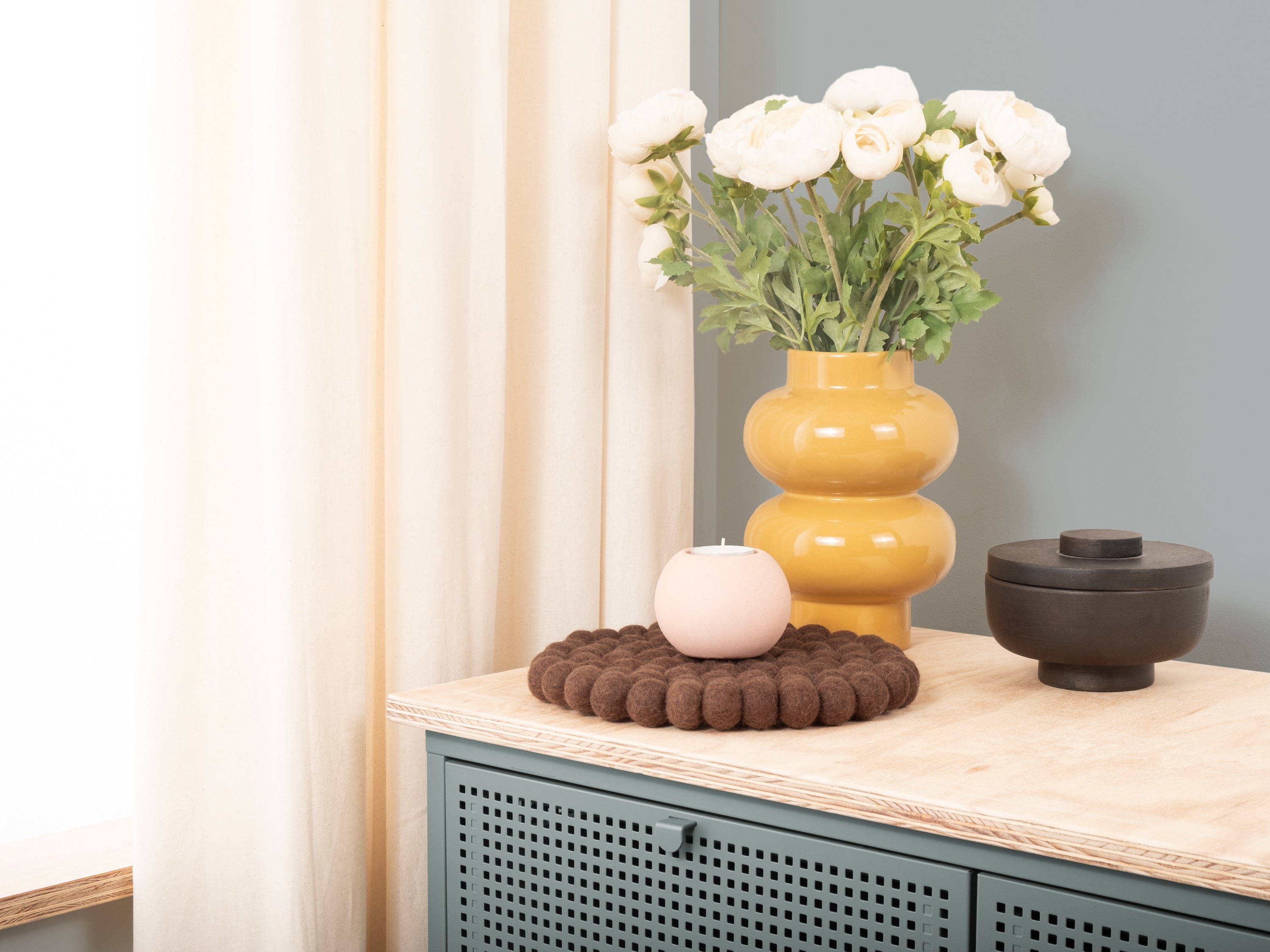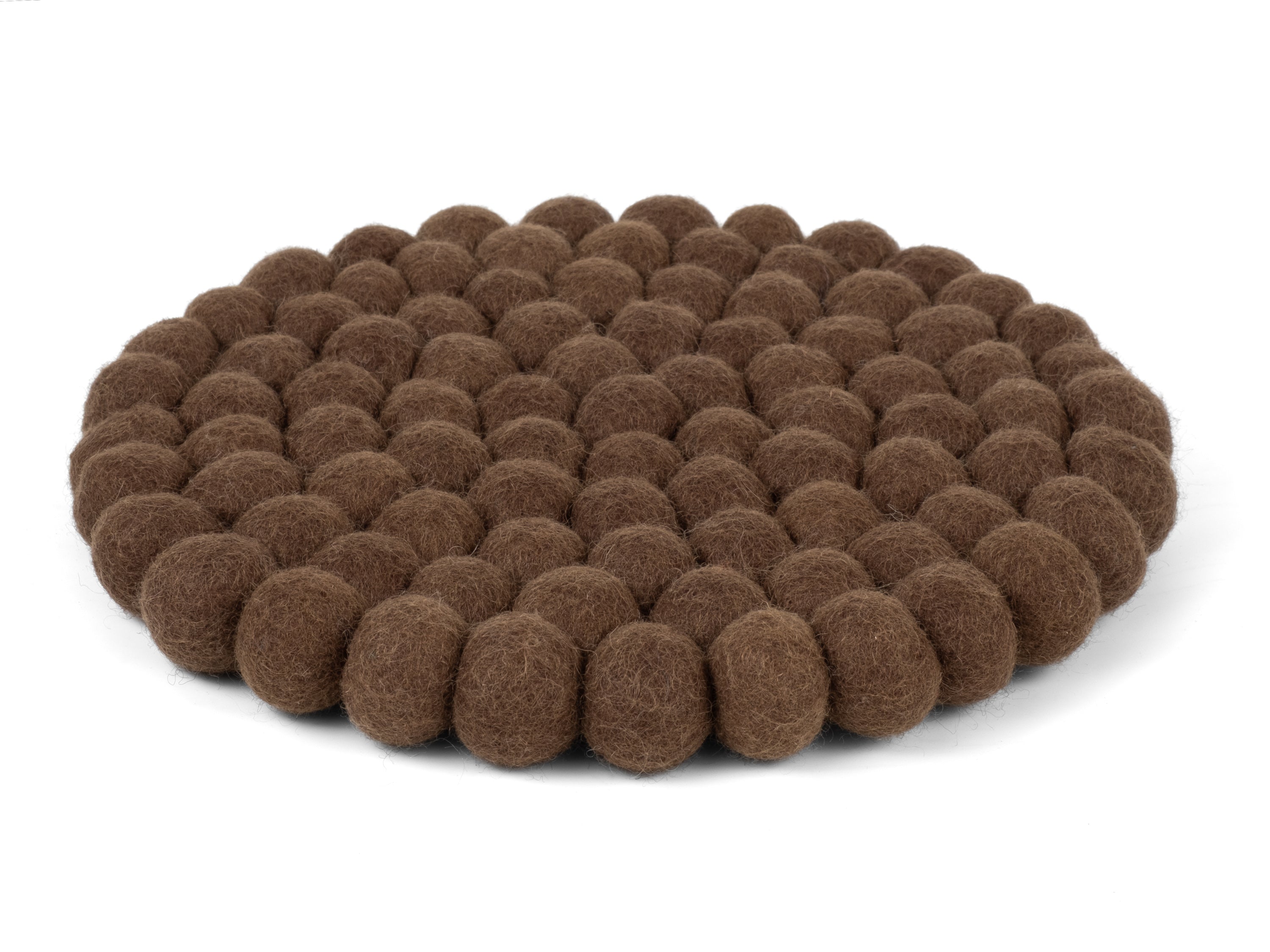 Podstawka Egon w kolorze brązowym łączy funkcjonalność z uroczym wyglądem. Wytrzymała, odporna na ciepło, wodę i zabrudzenia oraz dwustronna. Wykonana z czystej wełny dziewiczej, ręcznie w Nepalu w uczciwych warunkach.