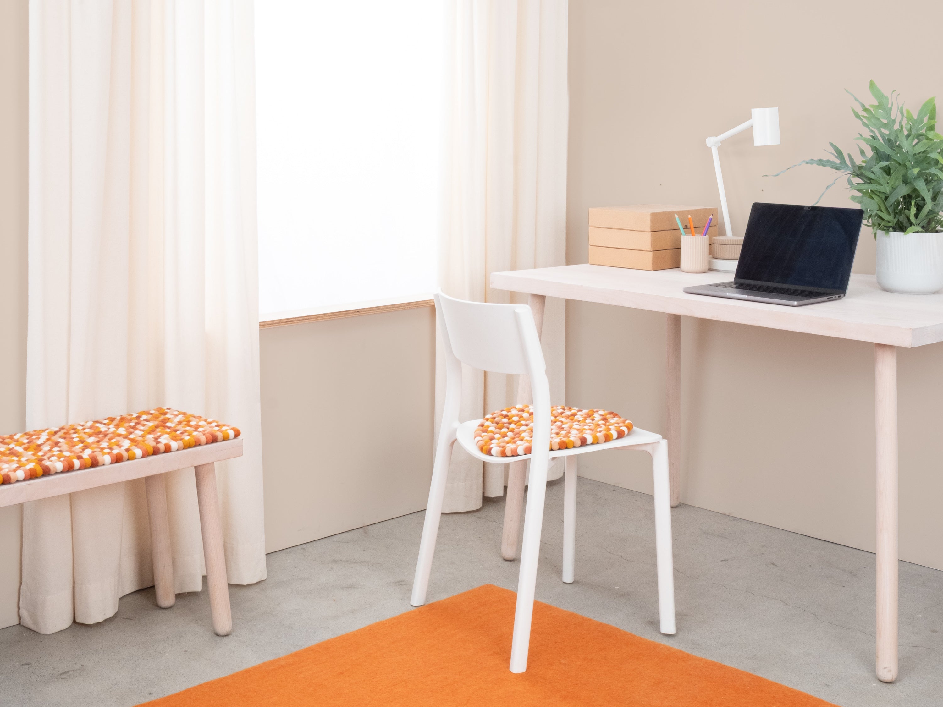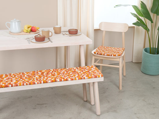 Poduszka na ławkę z kulek filcowych w kolorze wielokolorowym, z czystej wełny dziewiczej i w wybranym przez Ciebie rozmiarze.