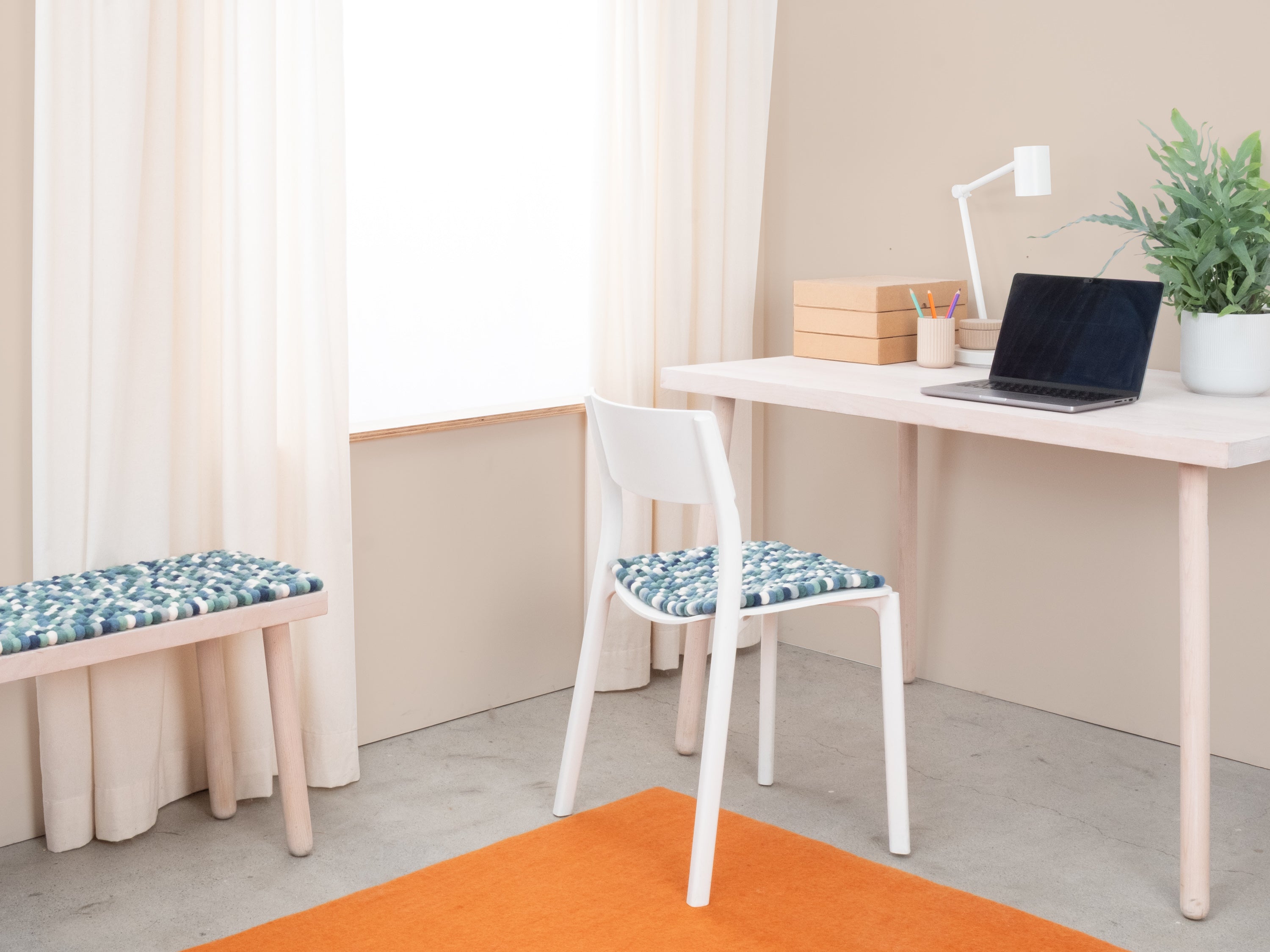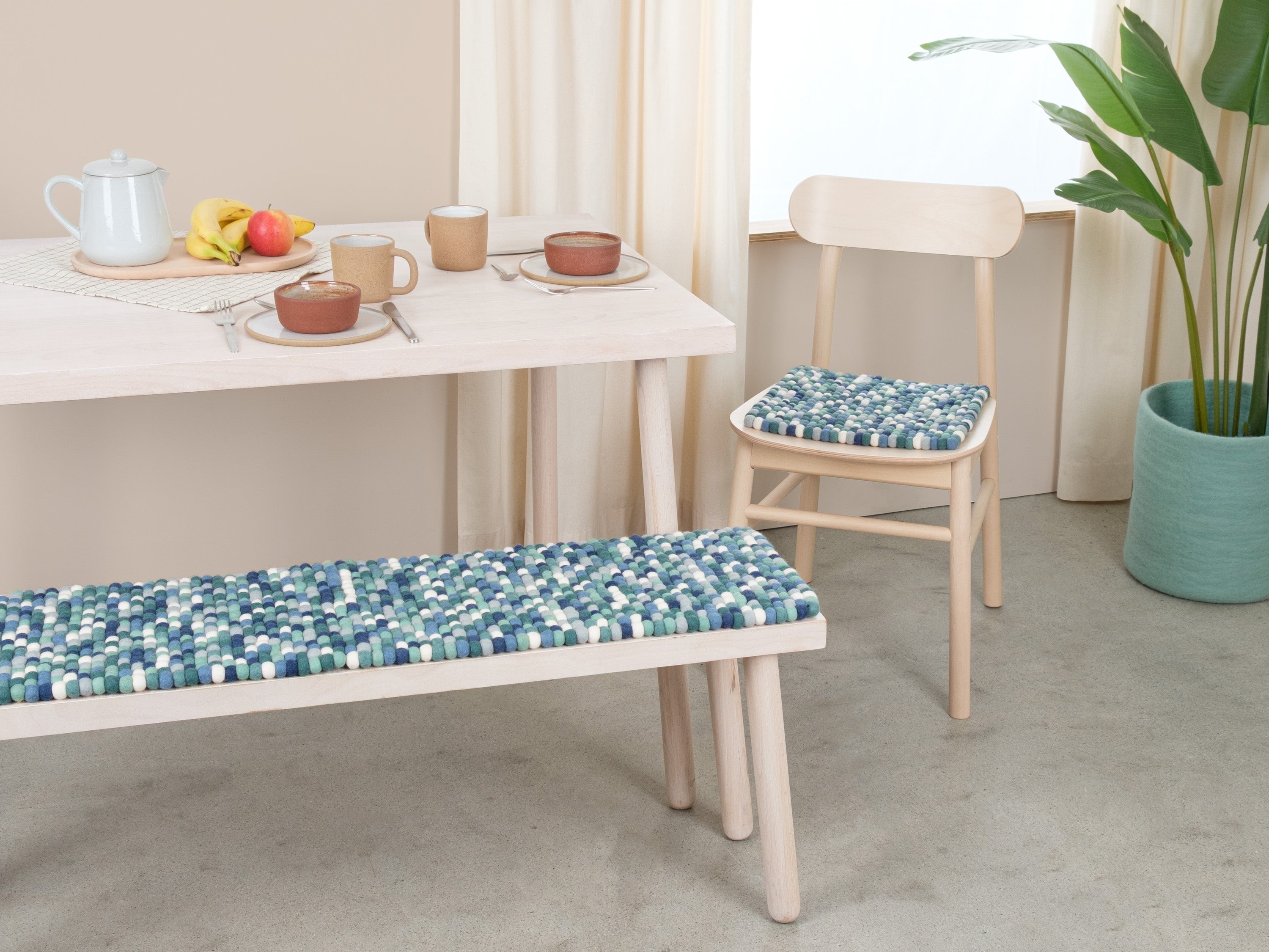 Poduszka na ławkę z kulek filcowych w kolorze wielokolorowym, z czystej wełny dziewiczej i w wybranym przez Ciebie rozmiarze.