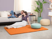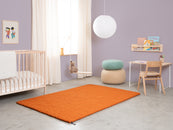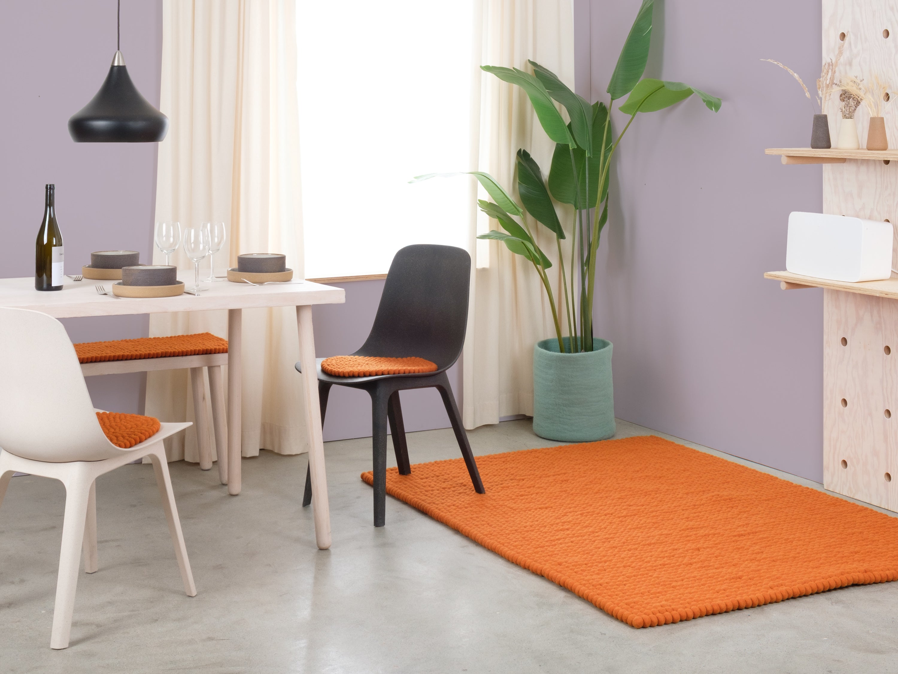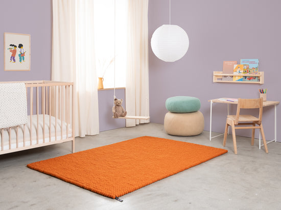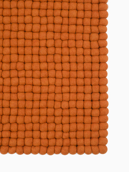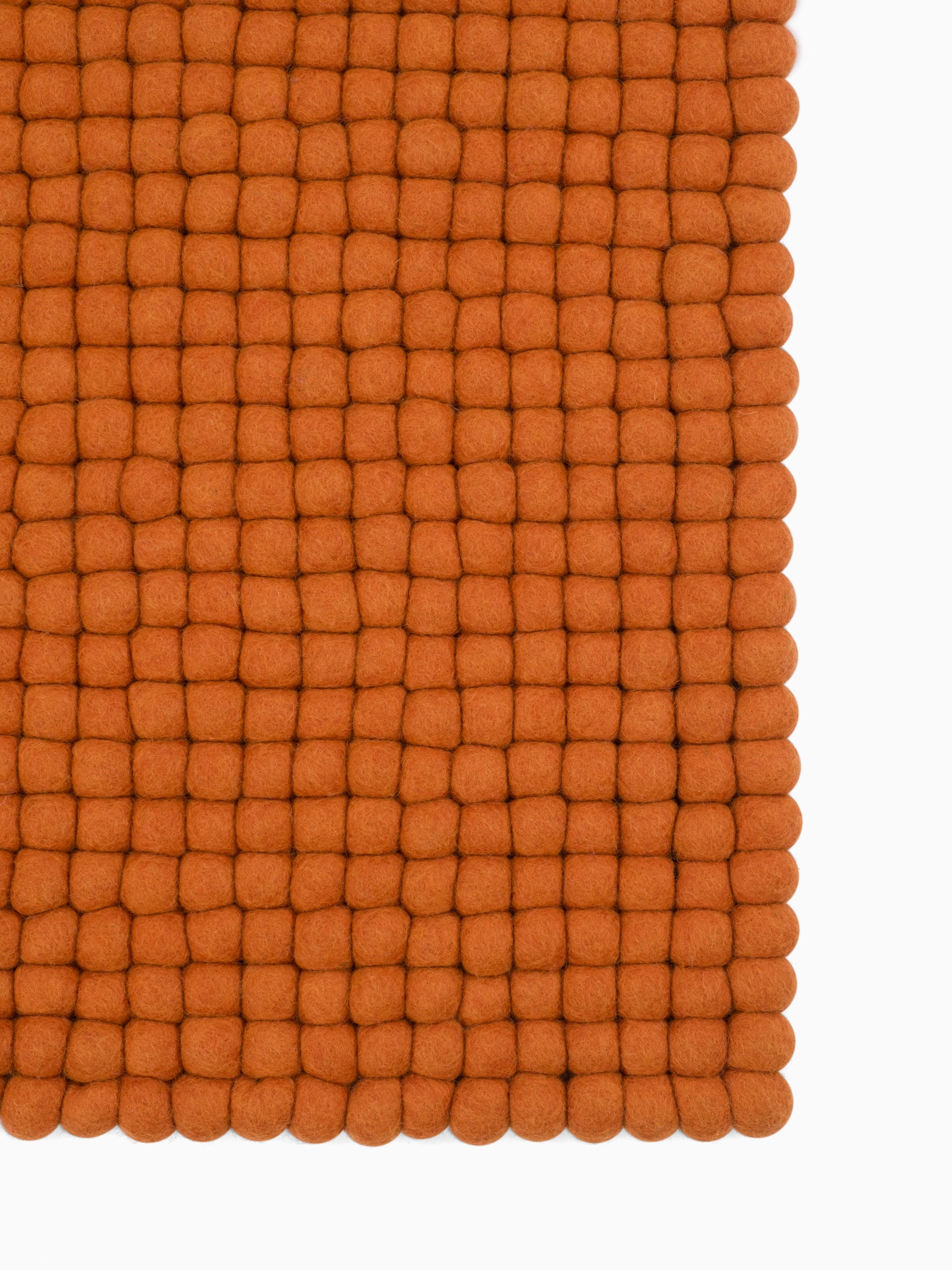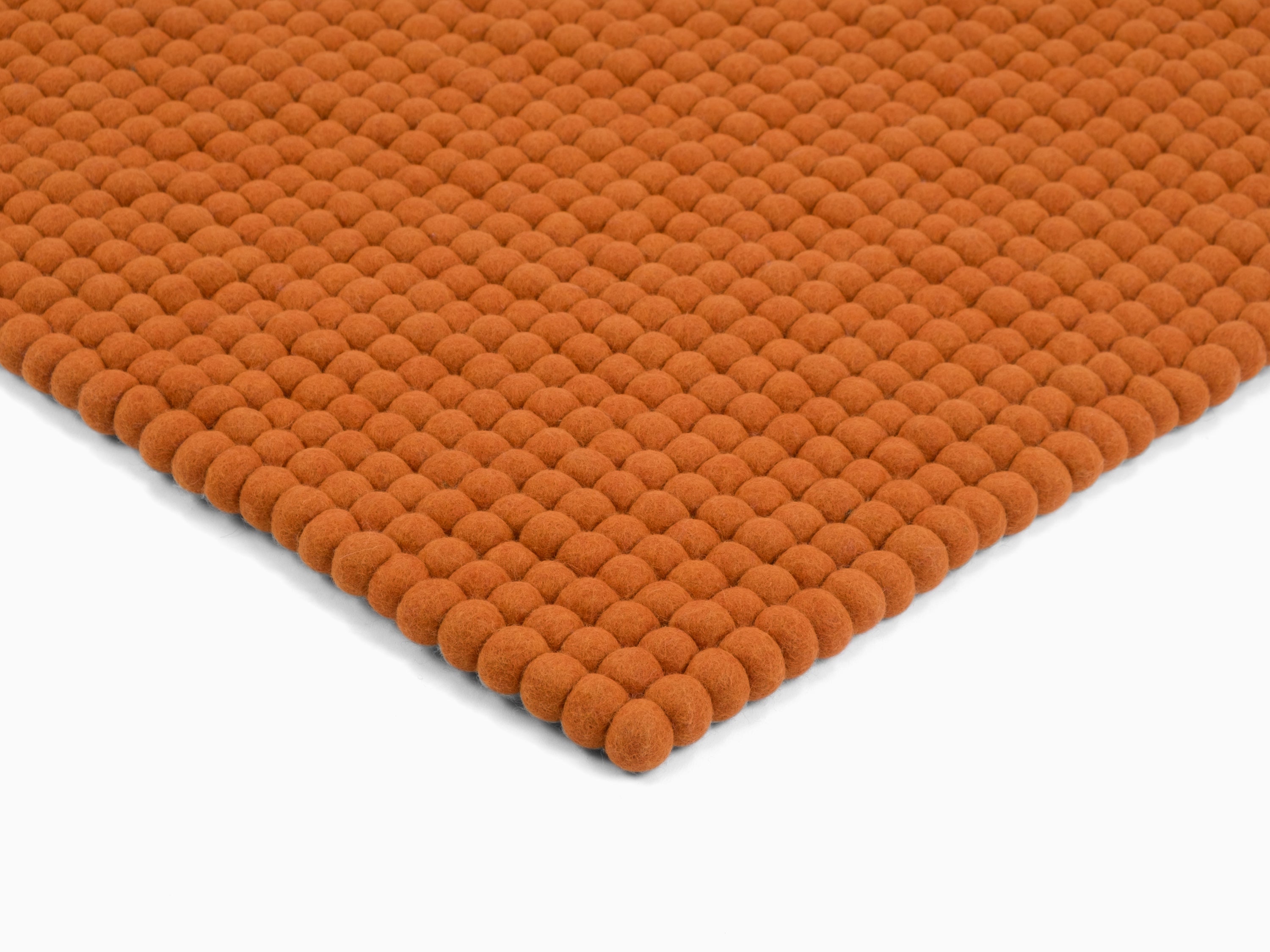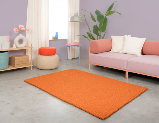 Afra wnosi ciepły pomarańczowy odcień do wnętrza. Dywan z kulek filcowych działa przyjaźnie i pełen energii, nie będąc nachalnym. Idealny do ocieplenia chłodnych pomieszczeń lub nadania akcentów. Trwały, łatwy w pielęgnacji i przyjemny w dotyku. Ręcznie wykonany w Nepalu – ze 100% czystej wełny dziewiczej.