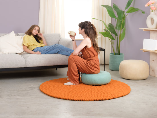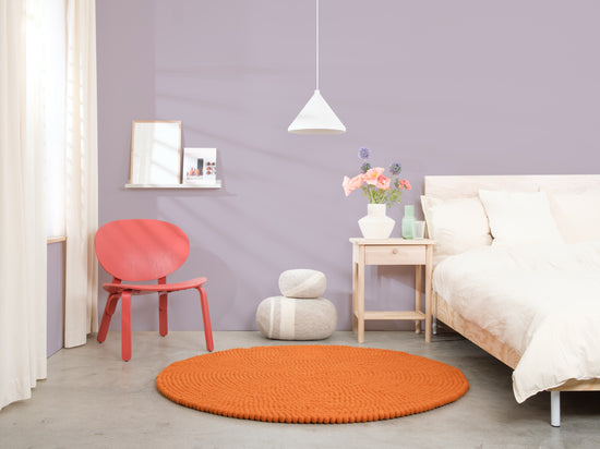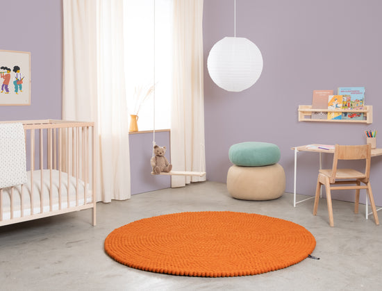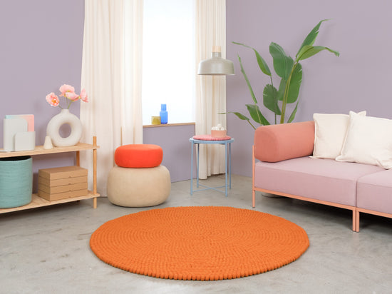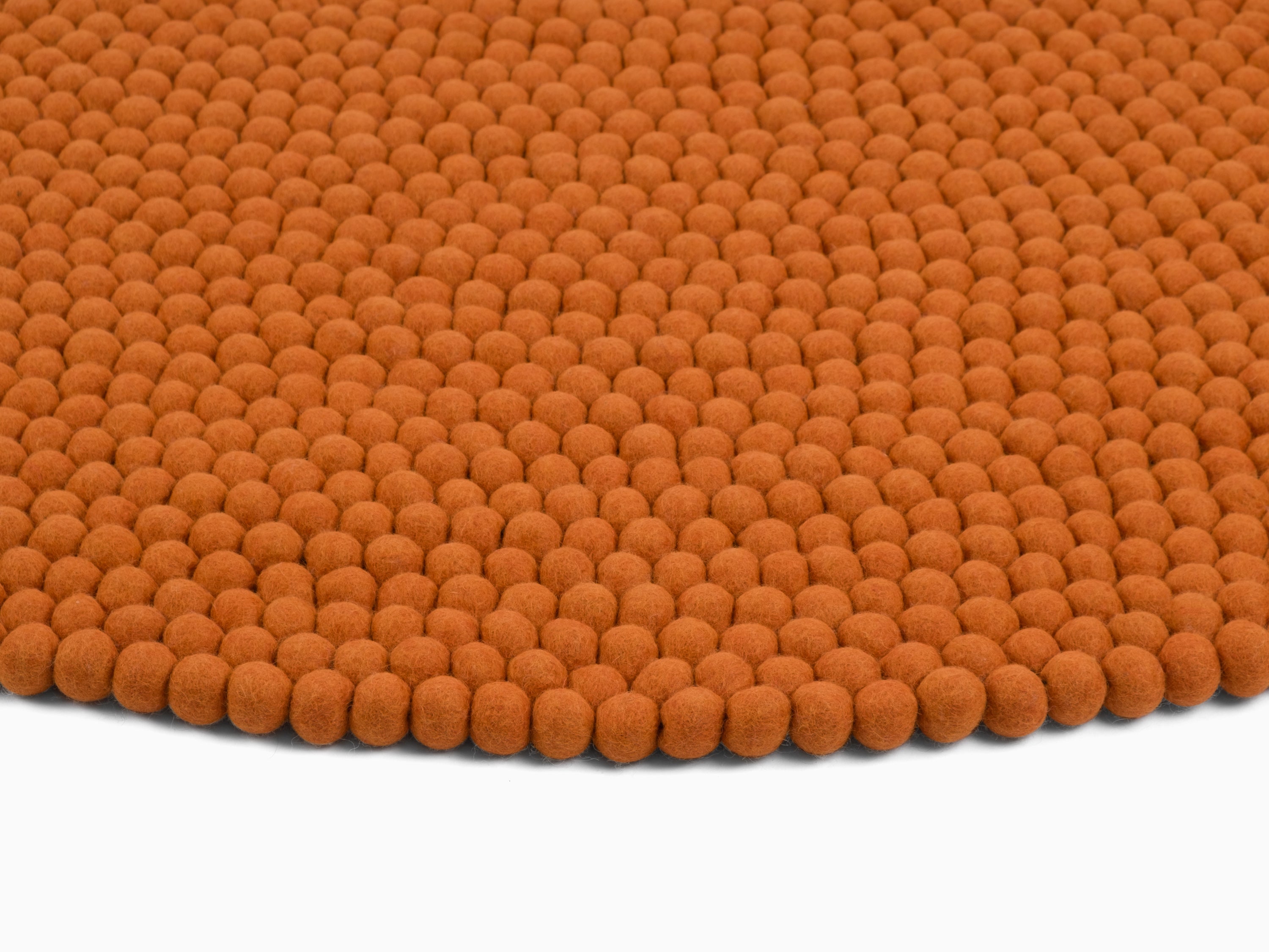Afra wnosi ciepły pomarańczowy odcień do wnętrza. Dywan z kulek filcowych działa przyjaźnie i pełen energii, nie będąc nachalnym. Idealny do ocieplenia chłodnych pomieszczeń lub nadania akcentów. Trwały, łatwy w pielęgnacji i przyjemny w dotyku. Ręcznie wykonany w Nepalu – ze 100% czystej wełny dziewiczej.