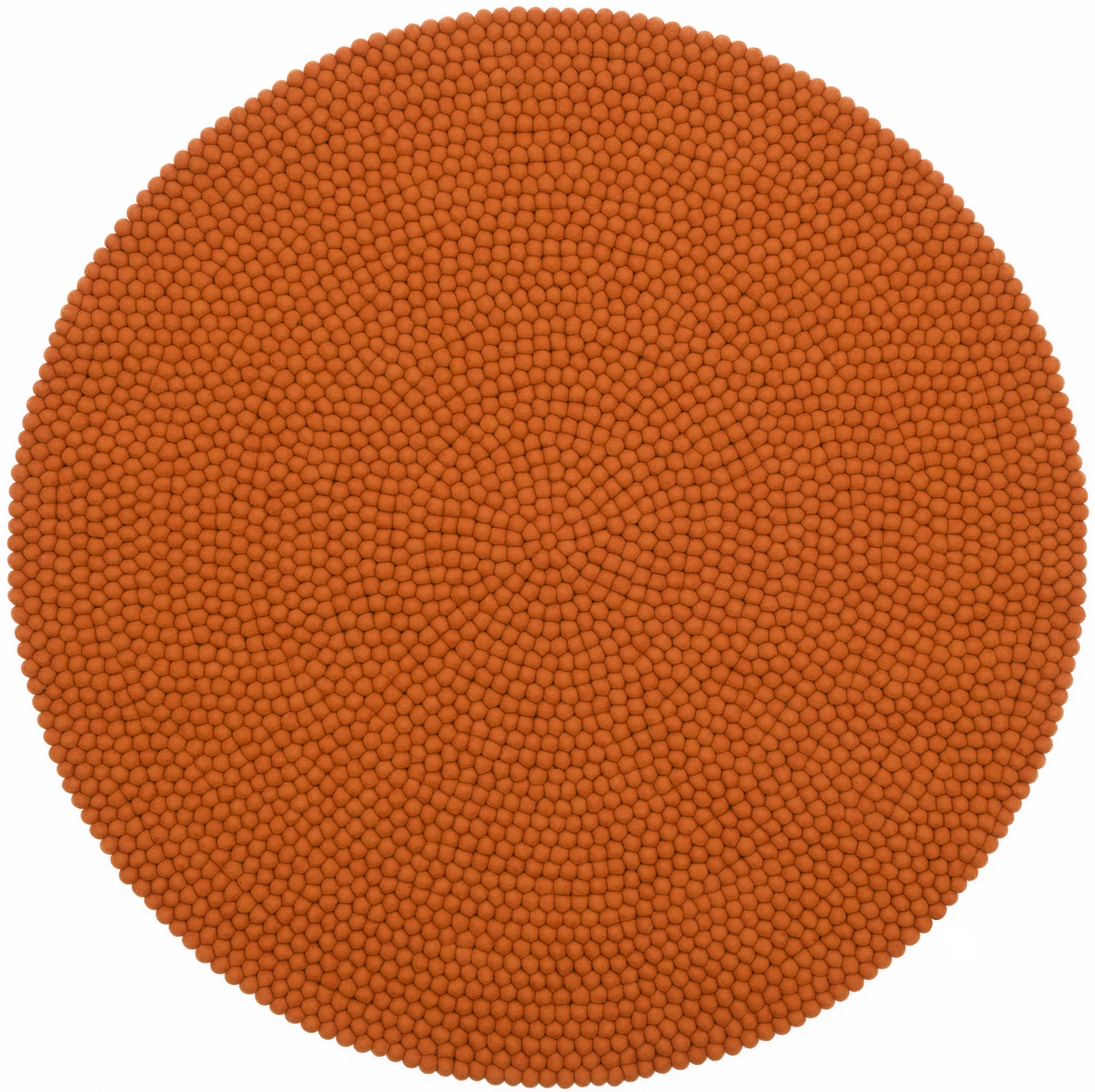 Okrągły dywan z kulek filcowych, wykonany z czystej wełny dziewiczej.
