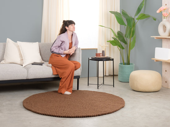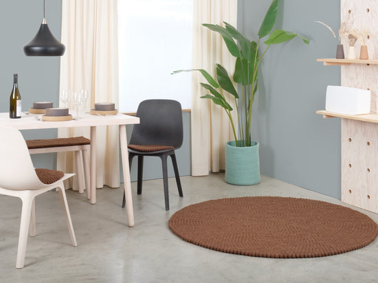 Egon stawia na ciepły czekoladowy brąz. Dywan z kulek filcowych uziemia każde wnętrze, wprowadzając przytulność i strukturę. Idealny do kącików do czytania i salonów, które potrzebują ciepła. Trwały, zachowuje kształt i jest przyjemny pod stopami. Ręcznie wykonany w Nepalu – ze 100% czystej wełny dziewiczej.