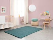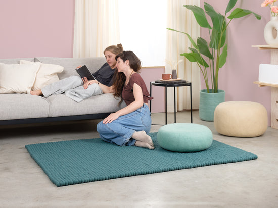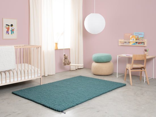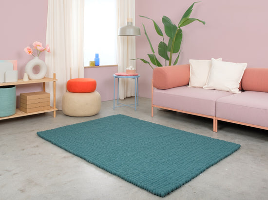 Noah to dywan z kulek filcowych w głębokim kolorze petrolu. Mocny, wyrazisty, a jednocześnie uspokajający – jako wyrazisty akcent lub spokojna podstawa. Pasuje do jasnego drewna, betonu i neutralnych barw. Wyjątkowo miękki, trwały i łatwy w pielęgnacji. Ręcznie wykonany w Nepalu ze 100% czystej wełny dziewiczej.
