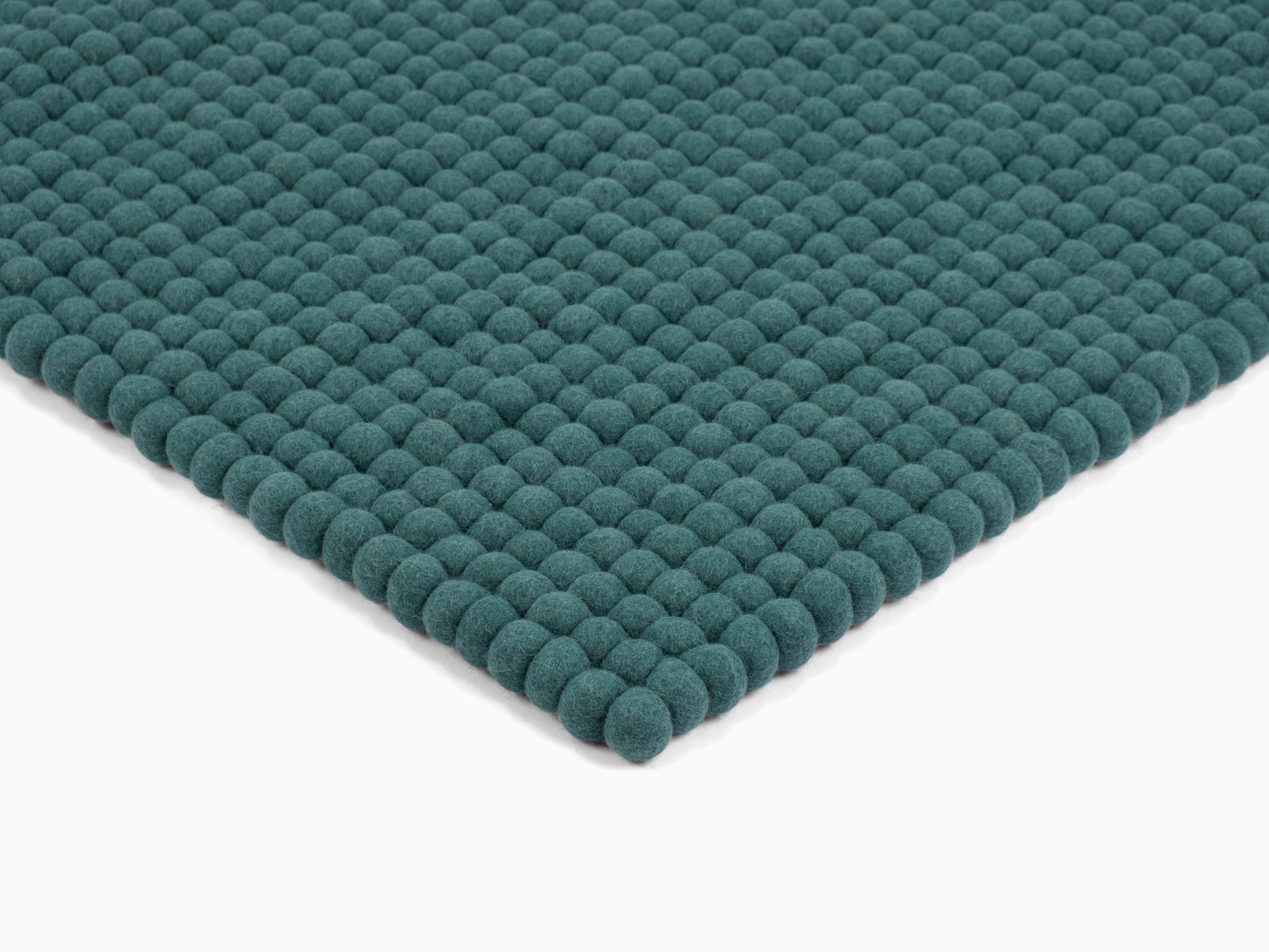 Prostokątny dywan z kulek filcowych, wykonany z czystej wełny dziewiczej.