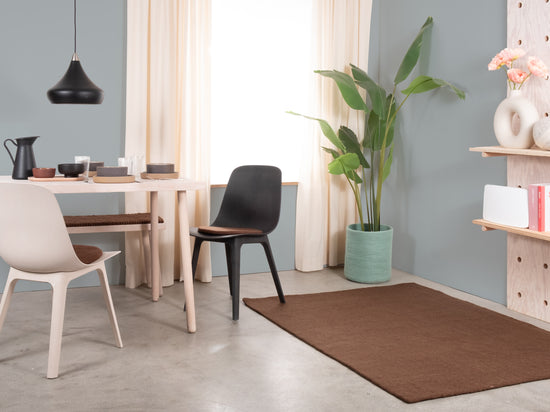 Egon stawia na ciepły czekoladowy brąz. Dywan filcowy uziemia każde wnętrze, wprowadzając przytulność i strukturę. Idealny do kącików do czytania i salonów, które potrzebują ciepła. Trwały, zachowuje kształt i jest przyjemny pod stopami. Ręcznie wykonany w Nepalu – ze 100% czystej wełny dziewiczej.