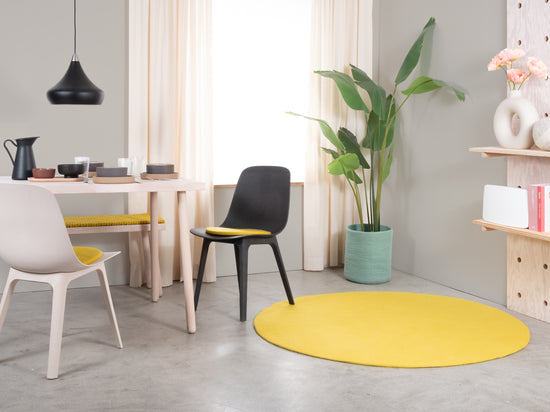 Kata to dywan z filcowych świeżej żółtozieleni. Jasny, żywy i pełen energii – wnosi ruch do wnętrza: radosny akcent w salonie lub punkt światła w strefie pracy. Dodaje lekkości i dynamiki. Miękki, solidny i łatwy w pielęgnacji. Ręcznie wykonany w Nepalu ze 100 % wełny dziewiczej.