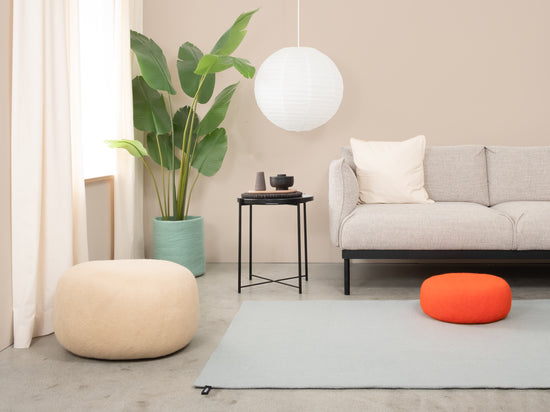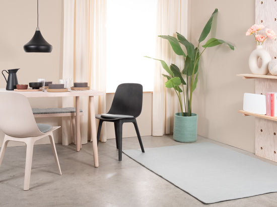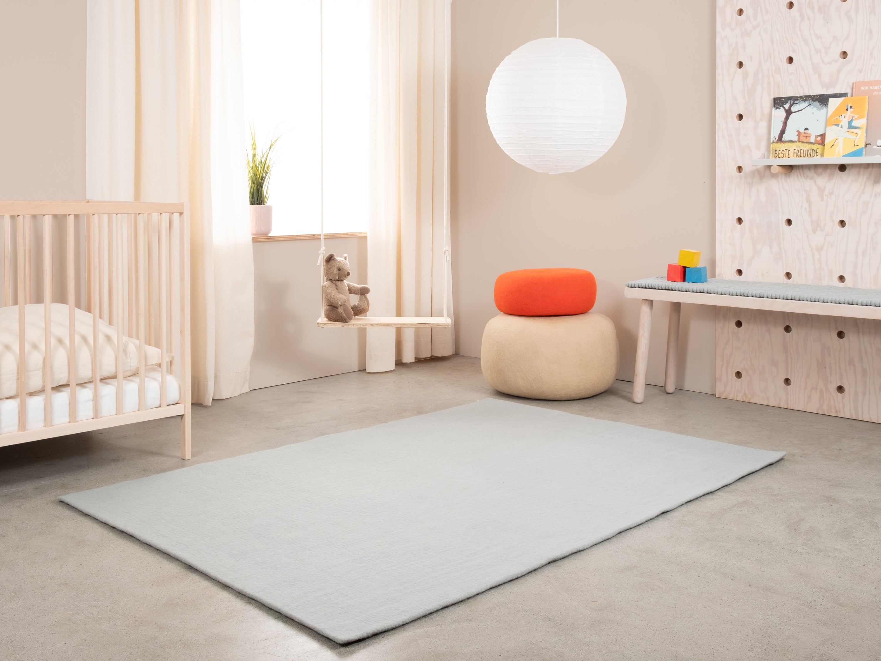 Liv to dywan filcowy w chłodnym jasnoniebieskim kolorze. Wnosi do wnętrza klarowność i lekkość, a małe pokoje wydają się większe. Pasuje do bieli, dębu i neutralnych tonów – jako spokojna baza lub świeży akcent. Miękki, dźwiękochłonny i naturalnie odporny na zabrudzenia. Ręcznie wykonany w Nepalu ze 100% czystej wełny dziewiczej.