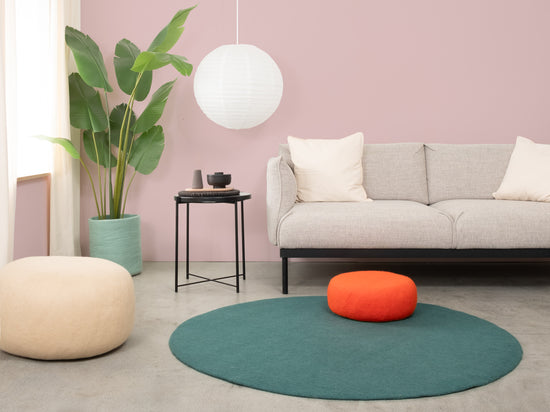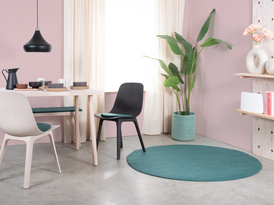 Noah to dywan z filcowych głębokim kolorze petrolowym. Mocny, klarowny, a jednocześnie kojący – jako wyrazisty akcent lub spokojna baza. Pasuje do jasnego drewna, betonu i neutralnych barw. Miękki pod stopami, trwały i łatwy w pielęgnacji. Ręcznie wykonany w Nepalu ze 100 % wełny dziewiczej.