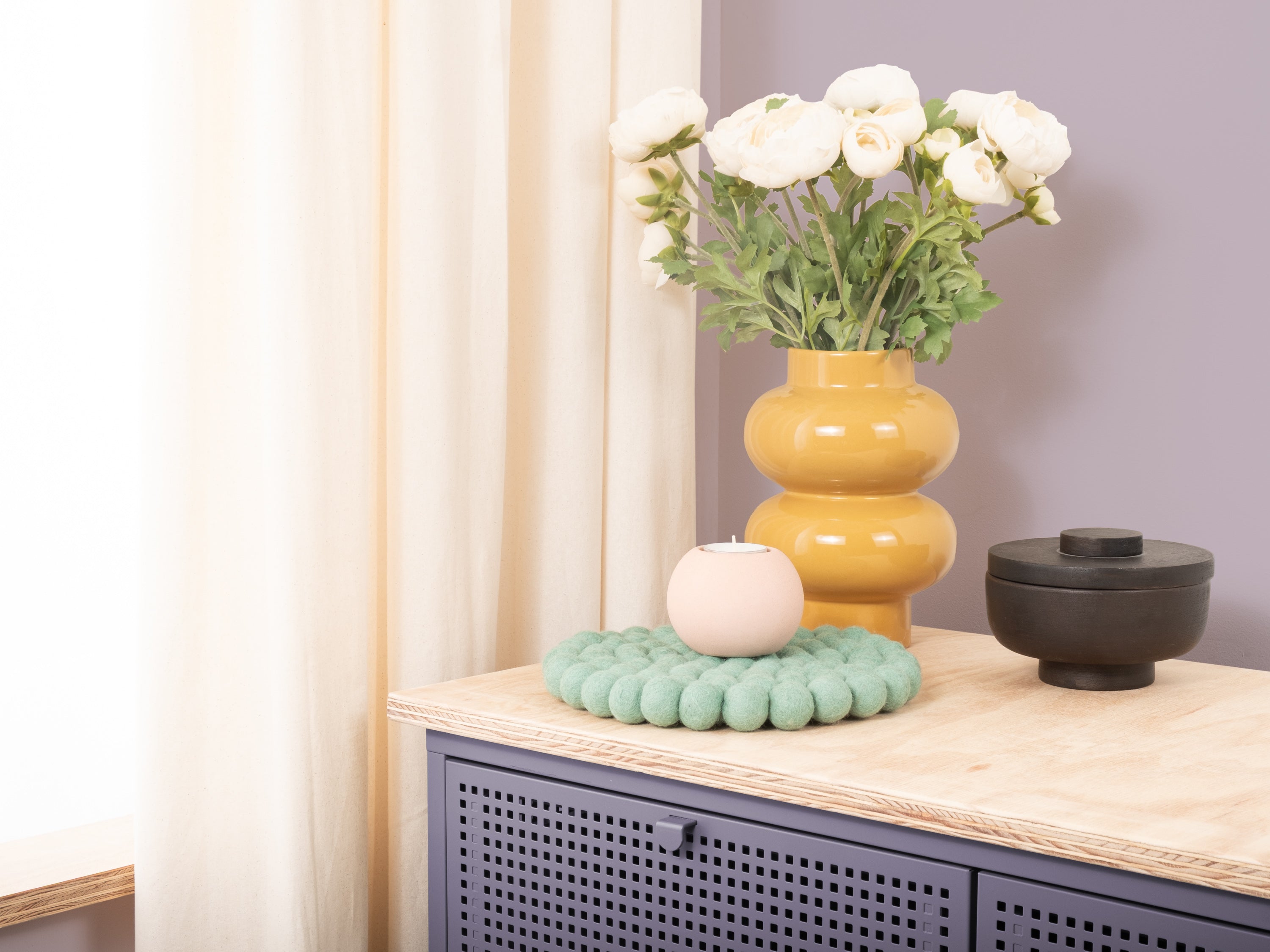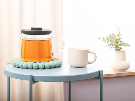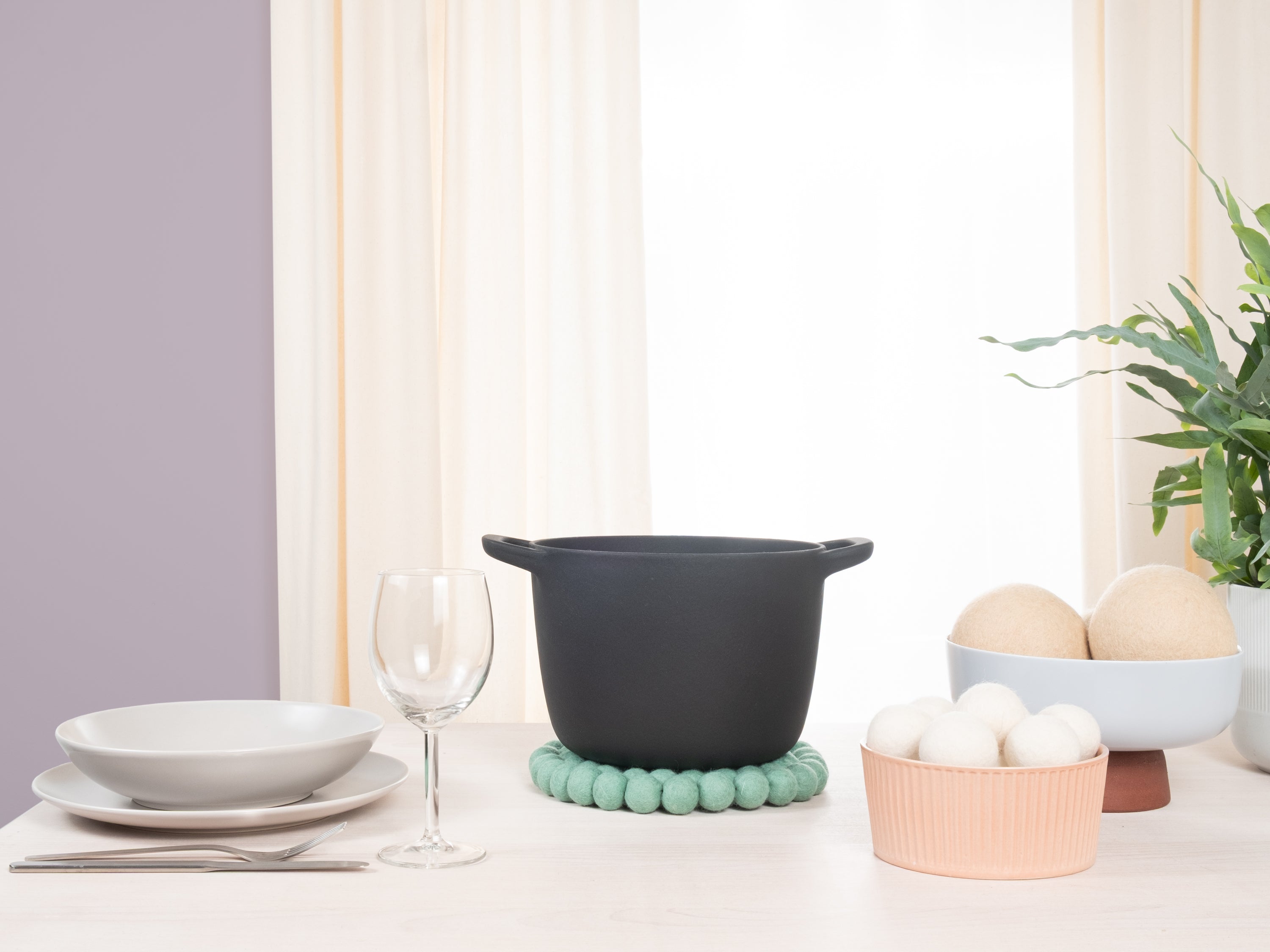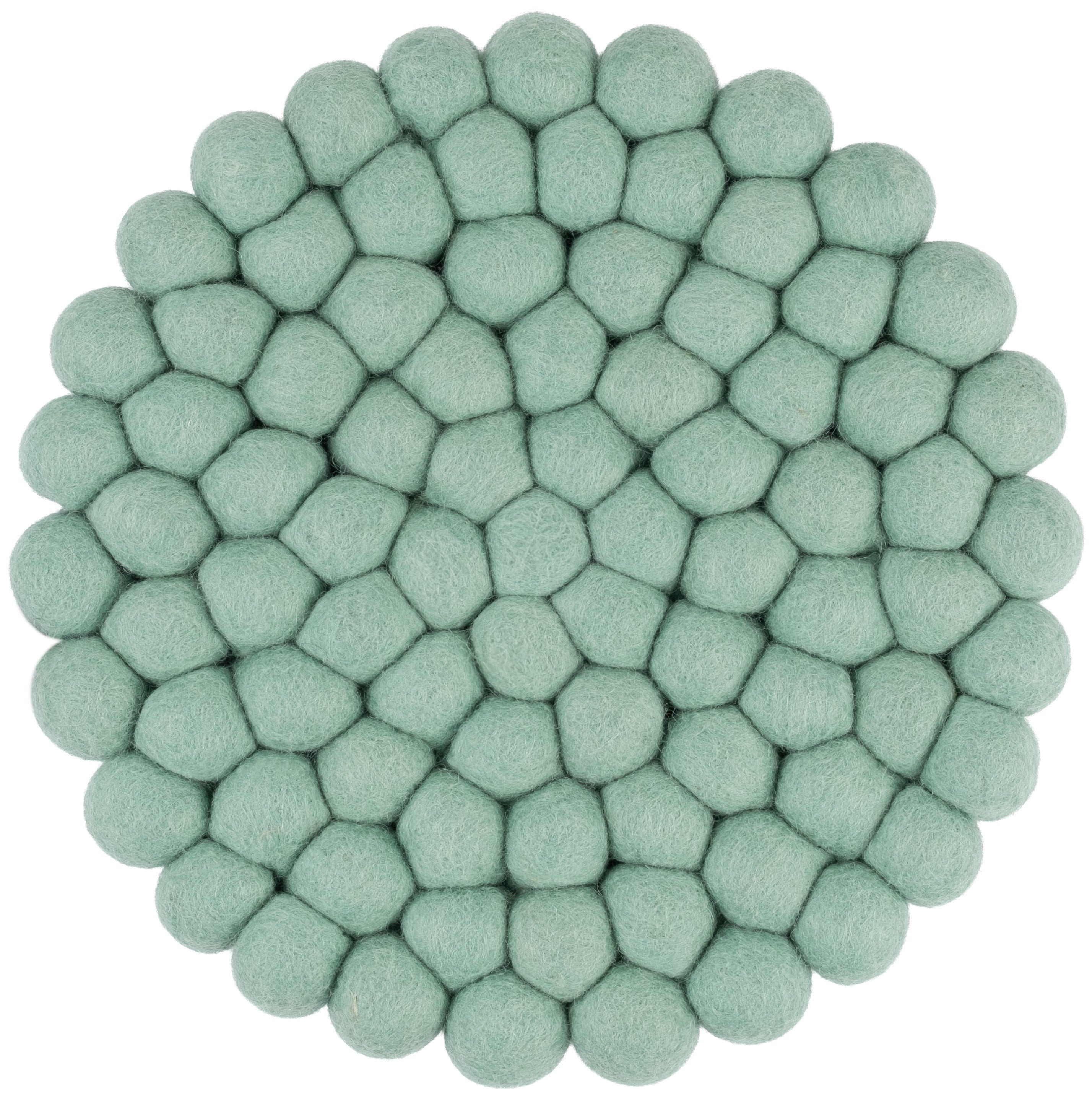 Podstawka Fine w kolorze turkusowym łączy funkcjonalność z uroczym wyglądem. Wytrzymała, odporna na ciepło, wodę i zabrudzenia oraz dwustronna. Wykonana z czystej wełny dziewiczej, ręcznie w Nepalu w uczciwych warunkach.