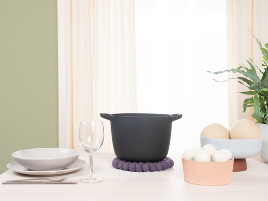 Okrągła, fioletowa podstawka pod garnek z czystej wełny dziewiczej | myfelt