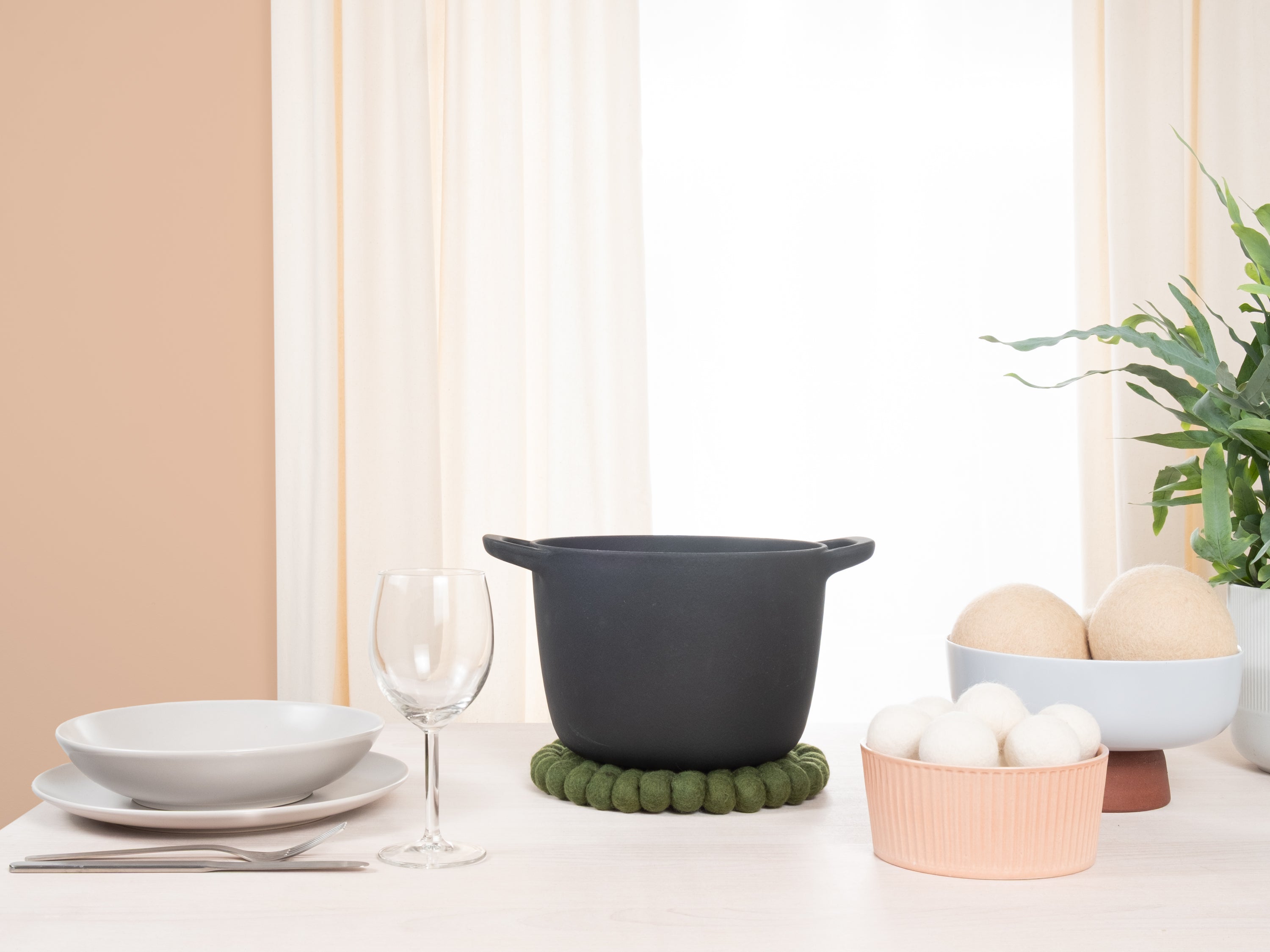 Okrągła, ciemnozielona podstawka pod garnek z czystej wełny dziewiczej | myfelt