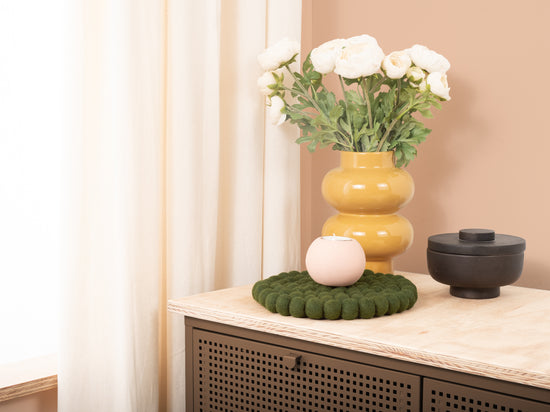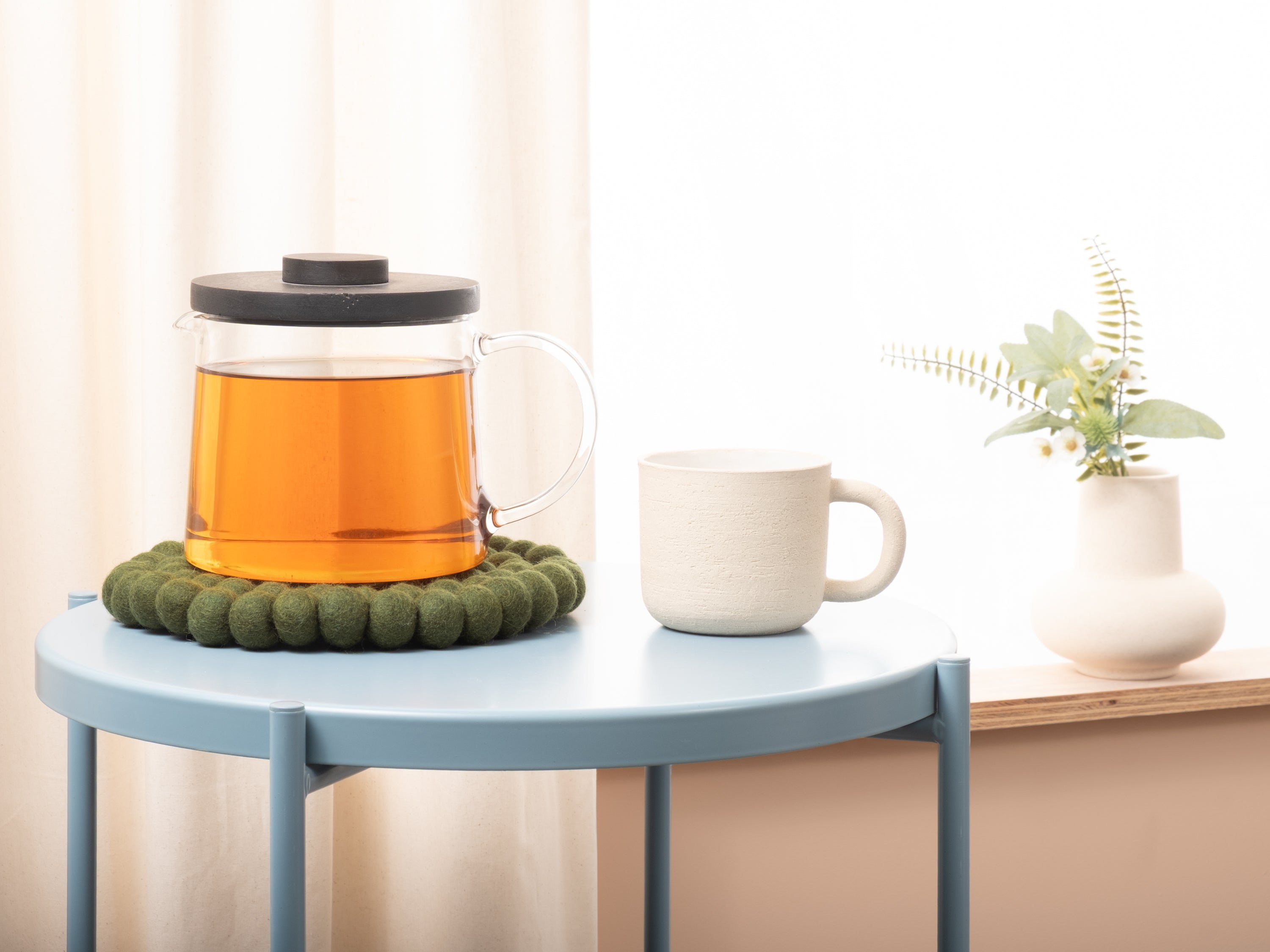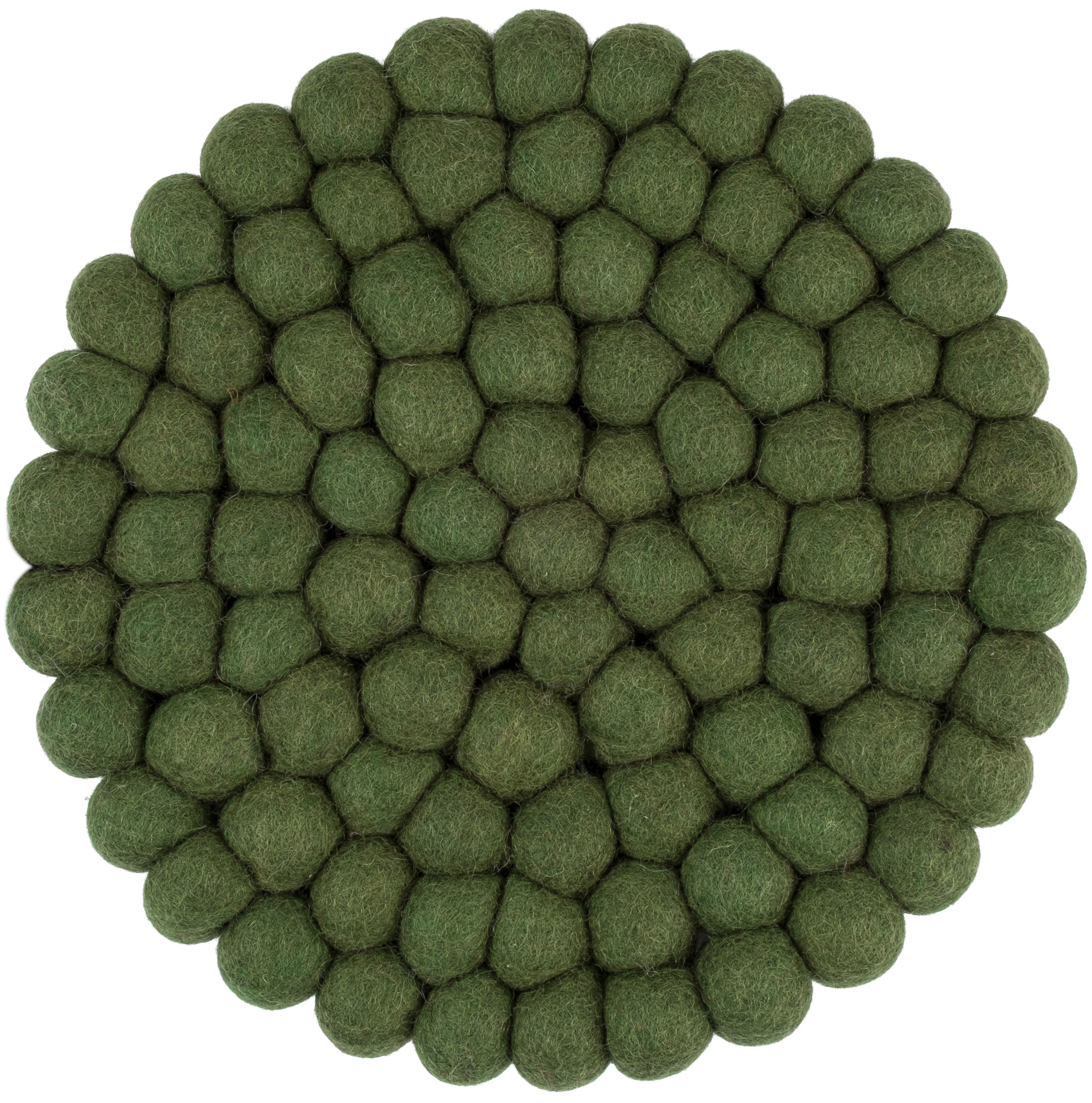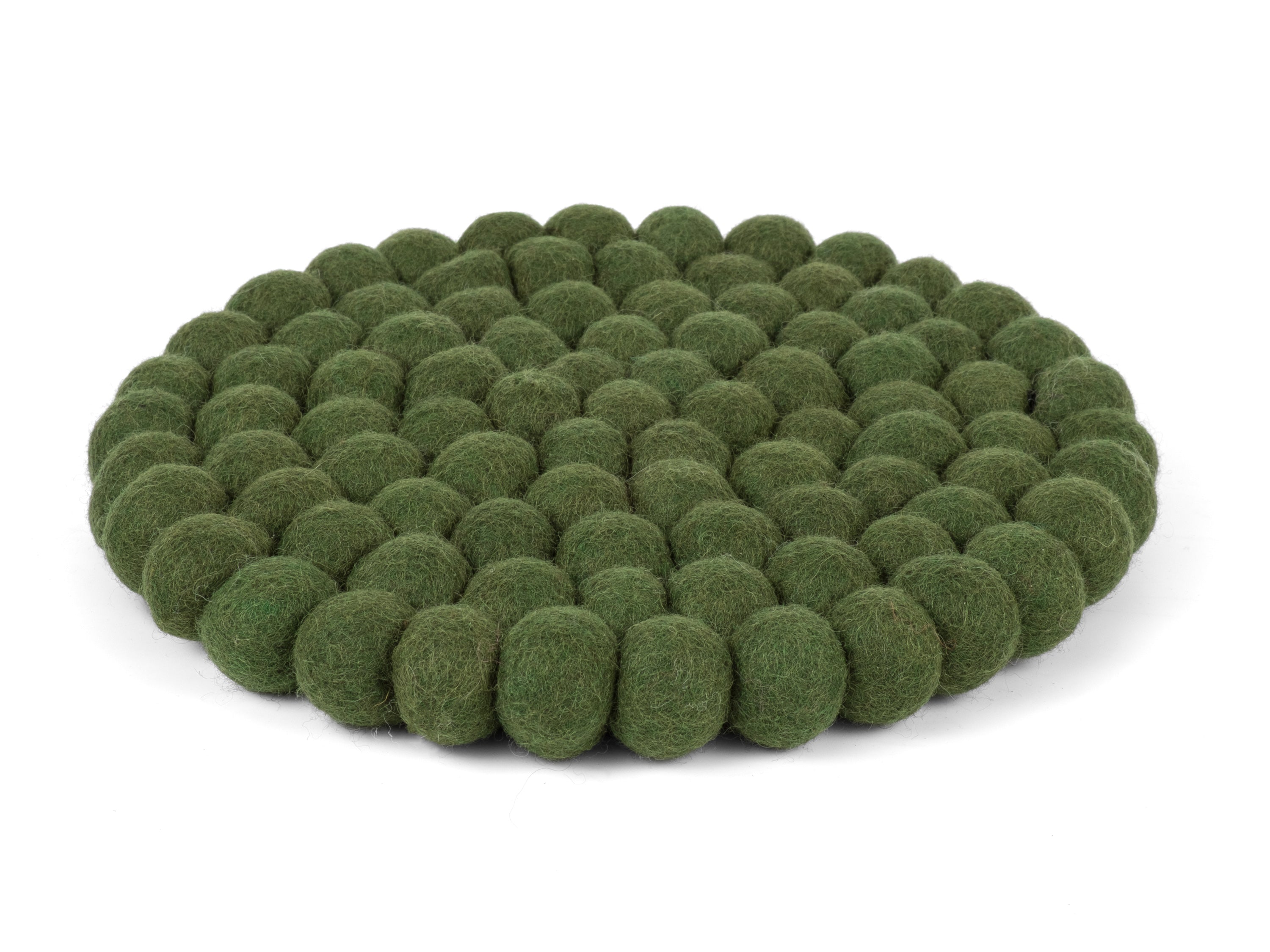 Podstawka Jost w kolorze ciemnozielonym łączy funkcjonalność z uroczym wyglądem. Wytrzymała, odporna na ciepło, wodę i zabrudzenia oraz dwustronna. Wykonana z czystej wełny dziewiczej, ręcznie w Nepalu w uczciwych warunkach.