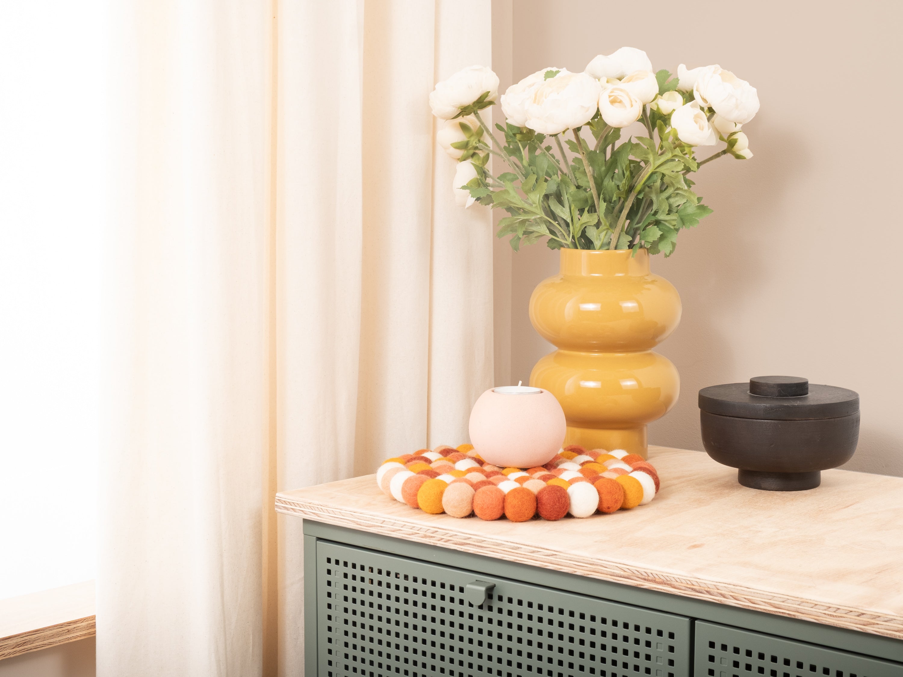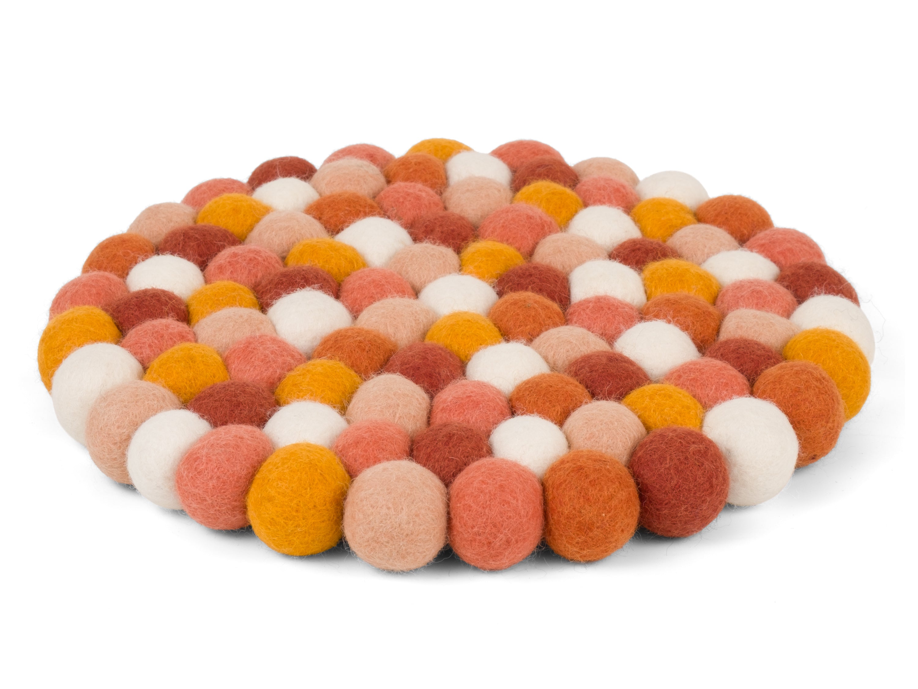 Podstawka Juna w kolorze wielobarwnym łączy funkcjonalność z uroczym wyglądem. Wytrzymała, odporna na ciepło, wodę i zabrudzenia oraz dwustronna. Wykonana z czystej wełny dziewiczej, ręcznie w Nepalu w uczciwych warunkach.