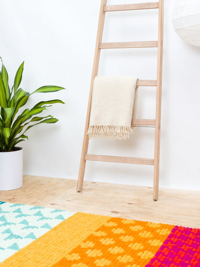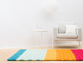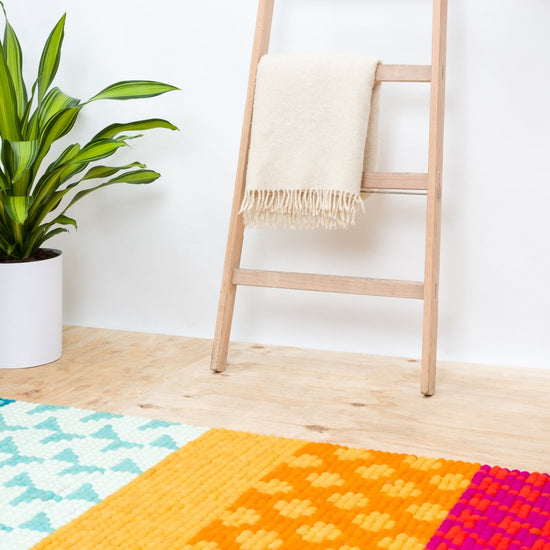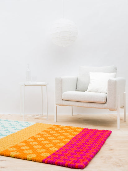 Prostokątny Dywan z kulek filcowych wykonany z czystej wełny dziewiczej.