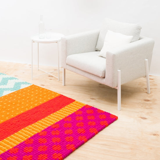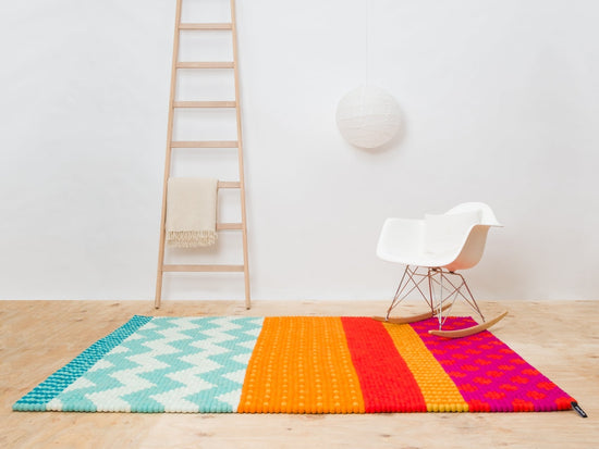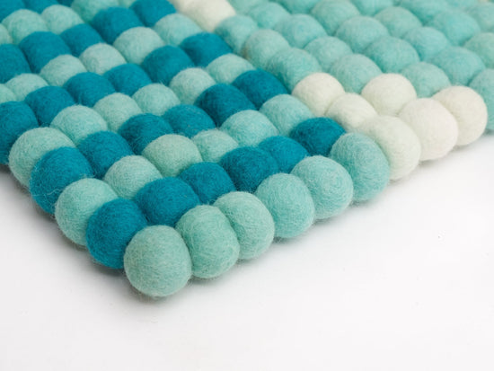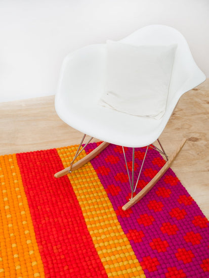 Prostokątny Dywan z kulek filcowych wykonany z czystej wełny dziewiczej.