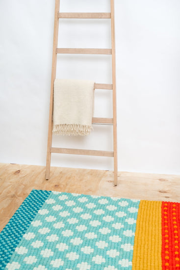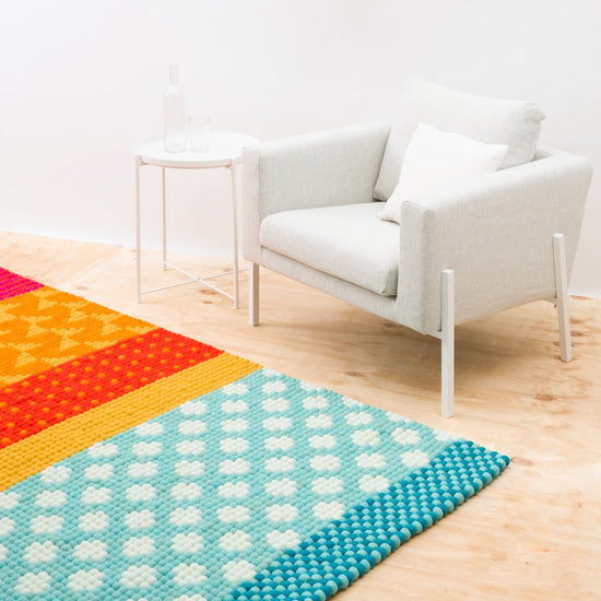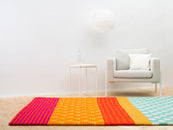 Prostokątny Dywan z kulek filcowych wykonany z czystej wełny dziewiczej.