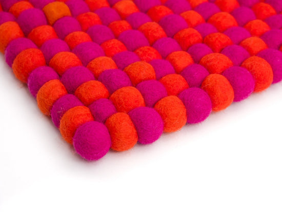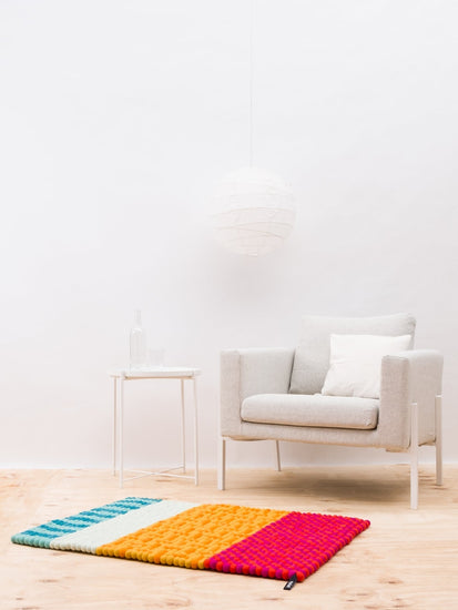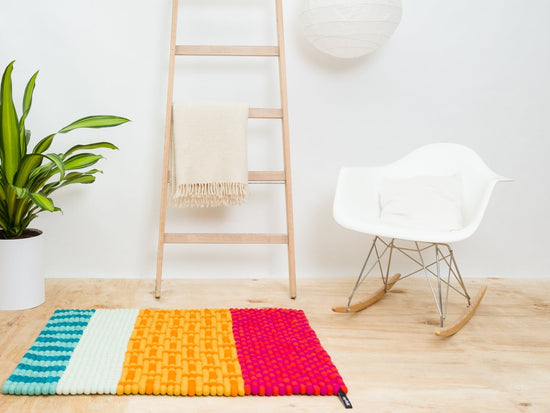 Prostokątny Dywan z kulek filcowych wykonany z czystej wełny dziewiczej.