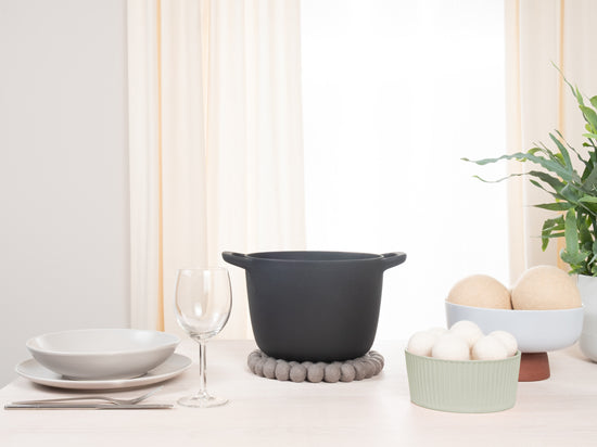 Okrągła, szara podstawka pod garnek z czystej wełny dziewiczej | myfelt