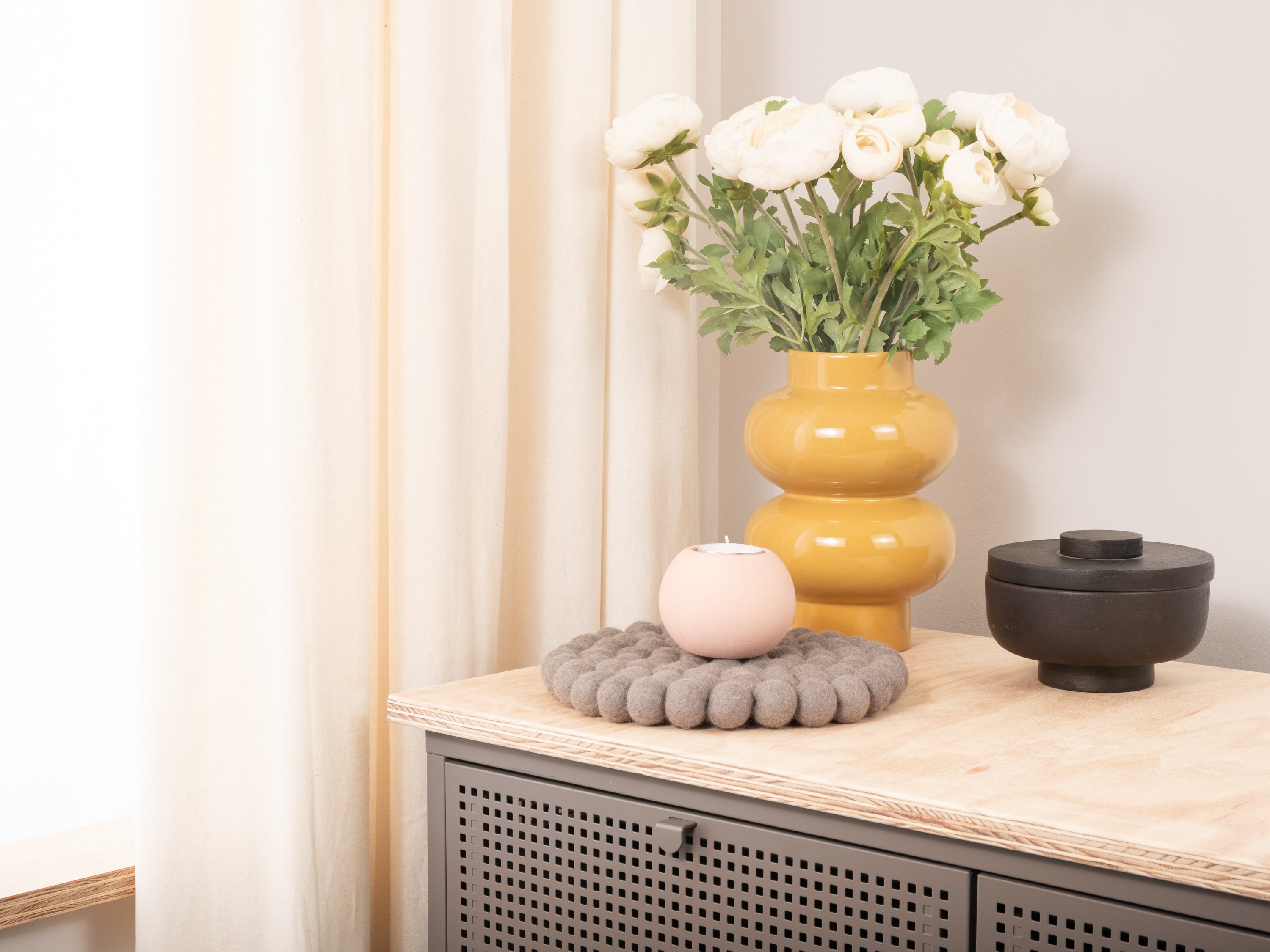 Podstawka Kian w kolorze szarym łączy funkcjonalność z uroczym wyglądem. Wytrzymała, odporna na ciepło, wodę i zabrudzenia oraz dwustronna. Wykonana z czystej wełny dziewiczej, ręcznie w Nepalu w uczciwych warunkach.
