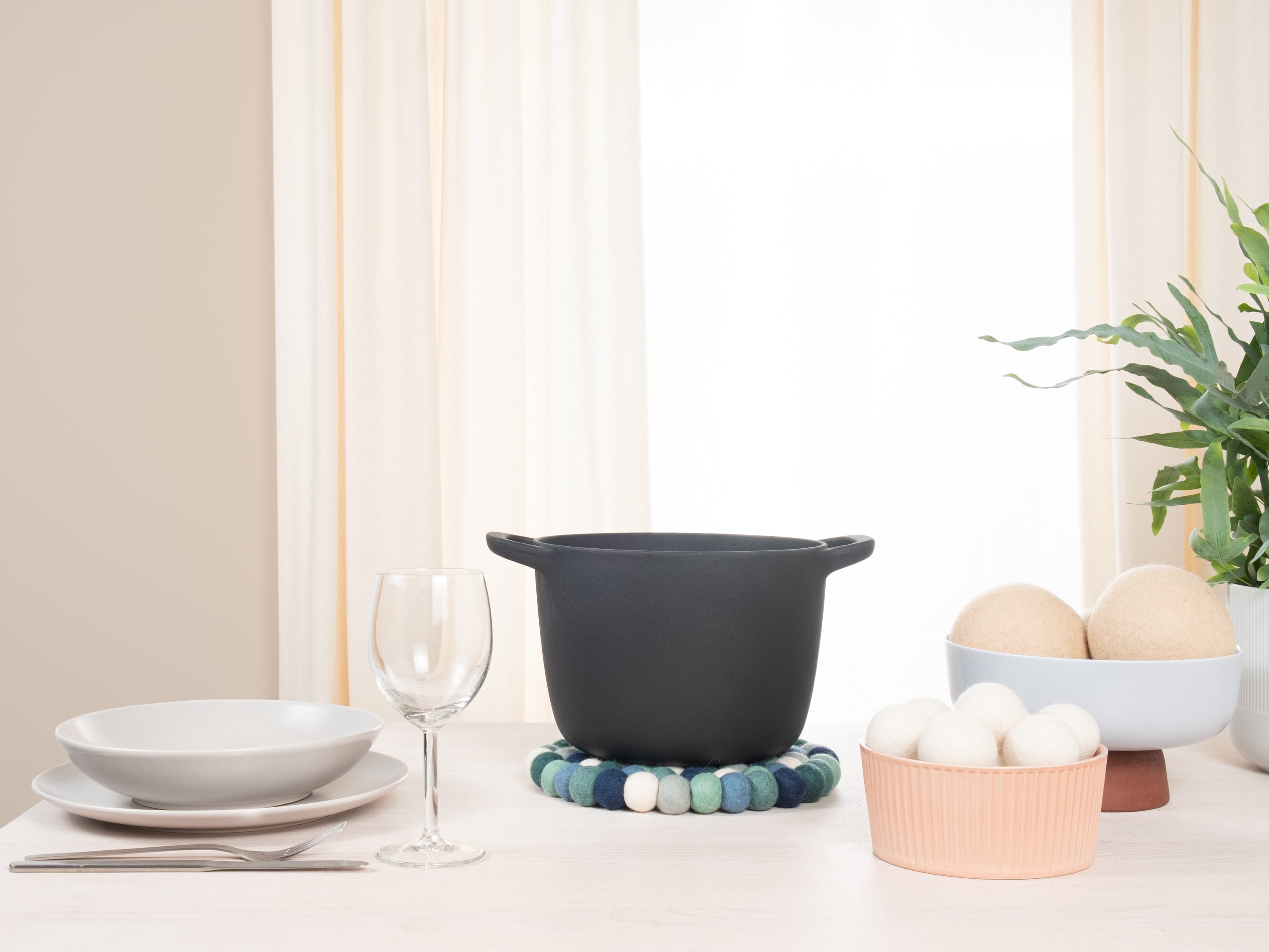 Podstawka Mare w kolorze wielobarwnym łączy funkcjonalność z uroczym wyglądem. Wytrzymała, odporna na ciepło, wodę i zabrudzenia oraz dwustronna. Wykonana z czystej wełny dziewiczej, ręcznie w Nepalu w uczciwych warunkach.