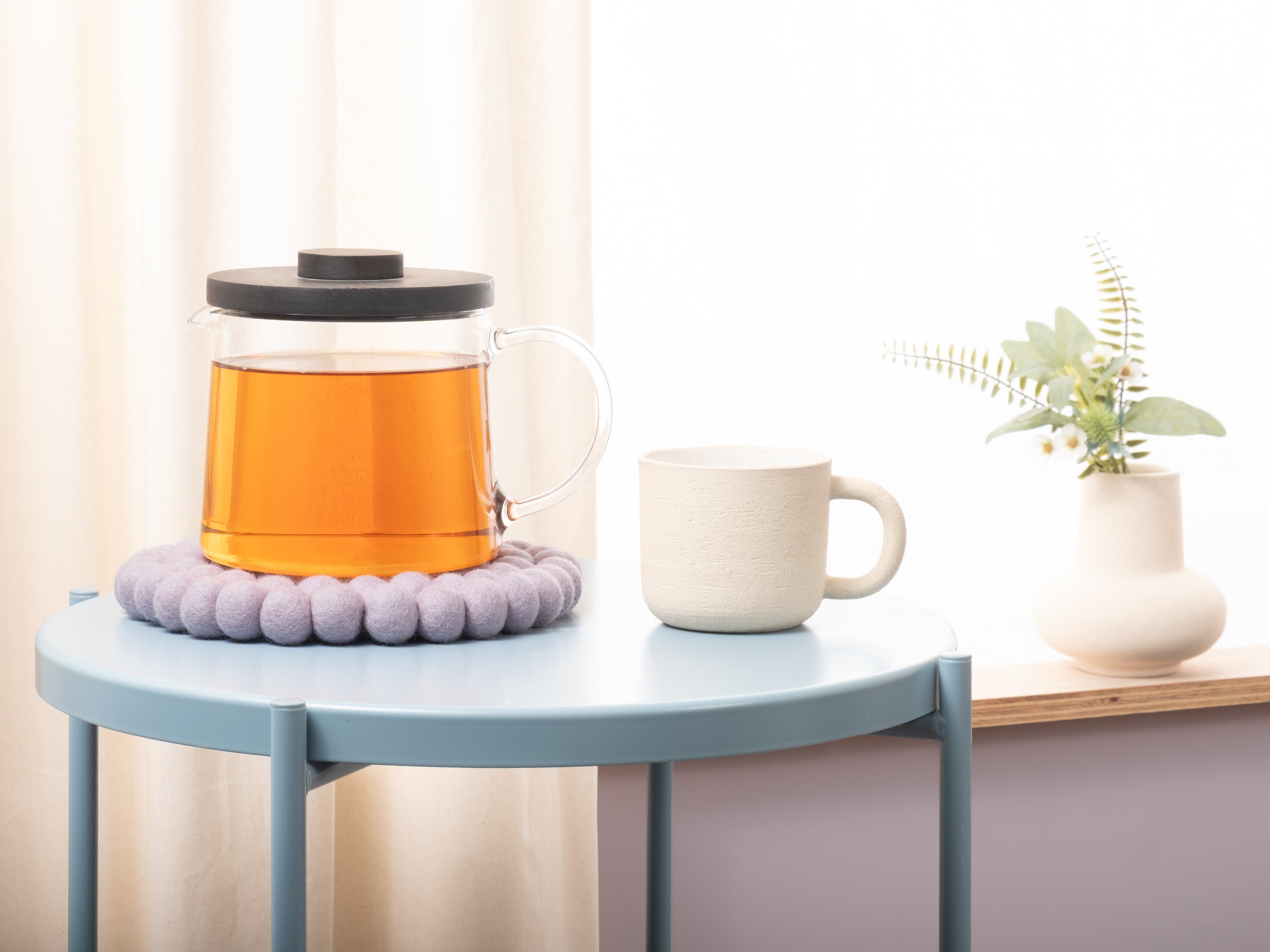 Podstawka Marla w kolorze jasnofioletowym łączy funkcjonalność z uroczym wyglądem. Wytrzymała, odporna na ciepło, wodę i zabrudzenia oraz dwustronna. Wykonana z czystej wełny dziewiczej, ręcznie w Nepalu w uczciwych warunkach.