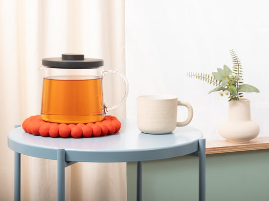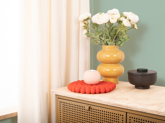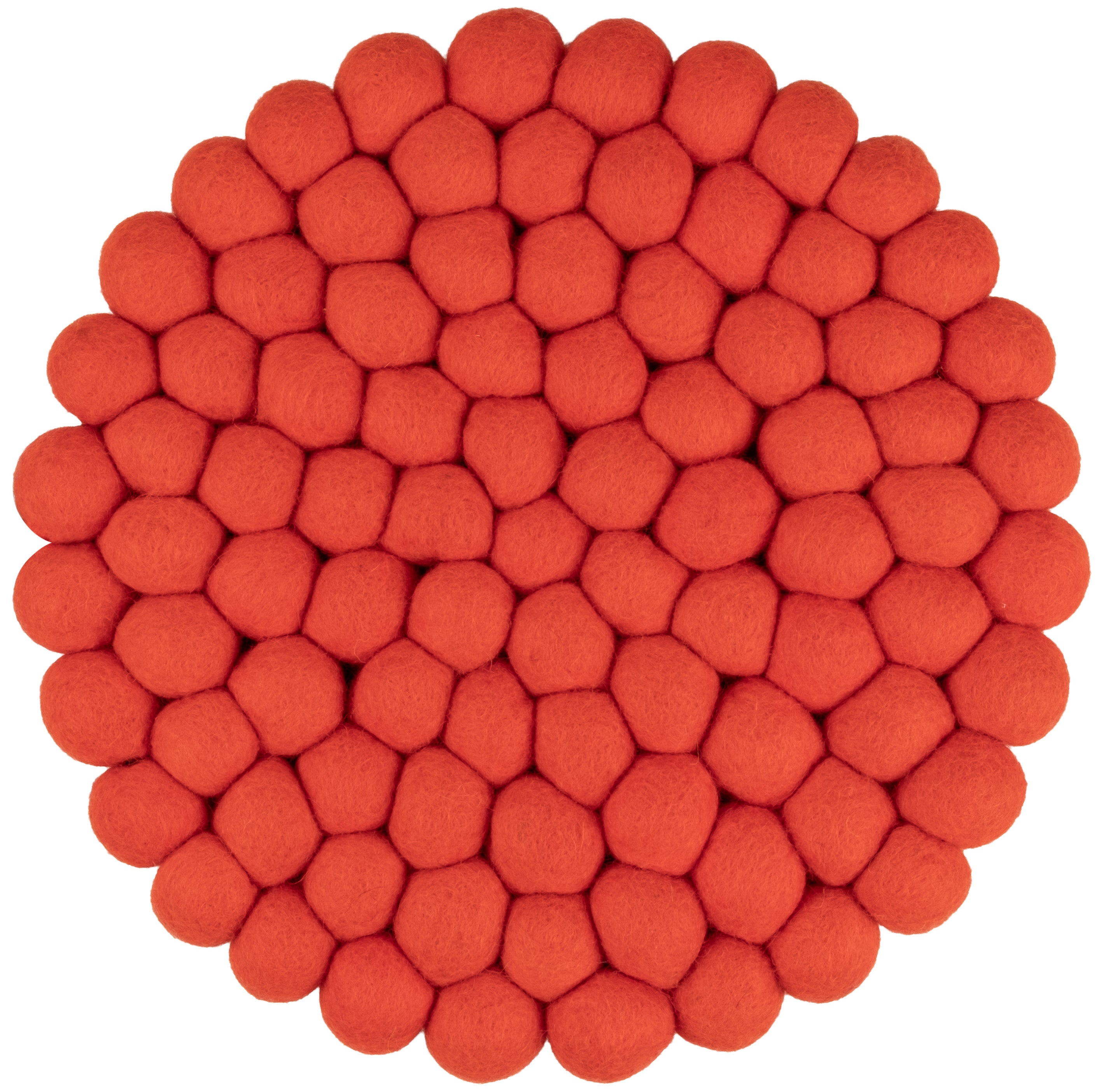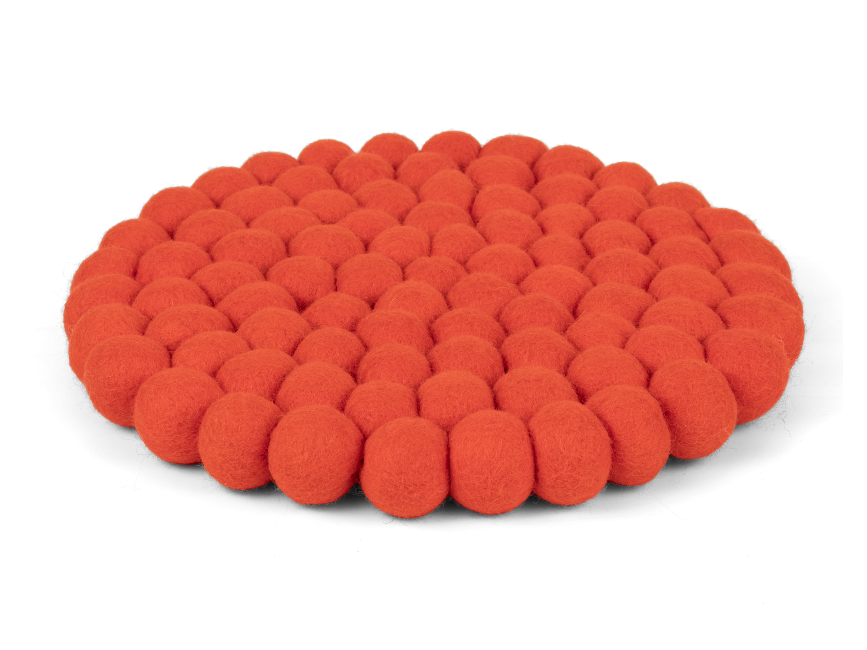 Podstawka Mats w kolorze czerwono-pomarańczowym łączy funkcjonalność z uroczym wyglądem. Wytrzymała, odporna na ciepło, wodę i zabrudzenia oraz dwustronna. Wykonana z czystej wełny dziewiczej, ręcznie w Nepalu w uczciwych warunkach.