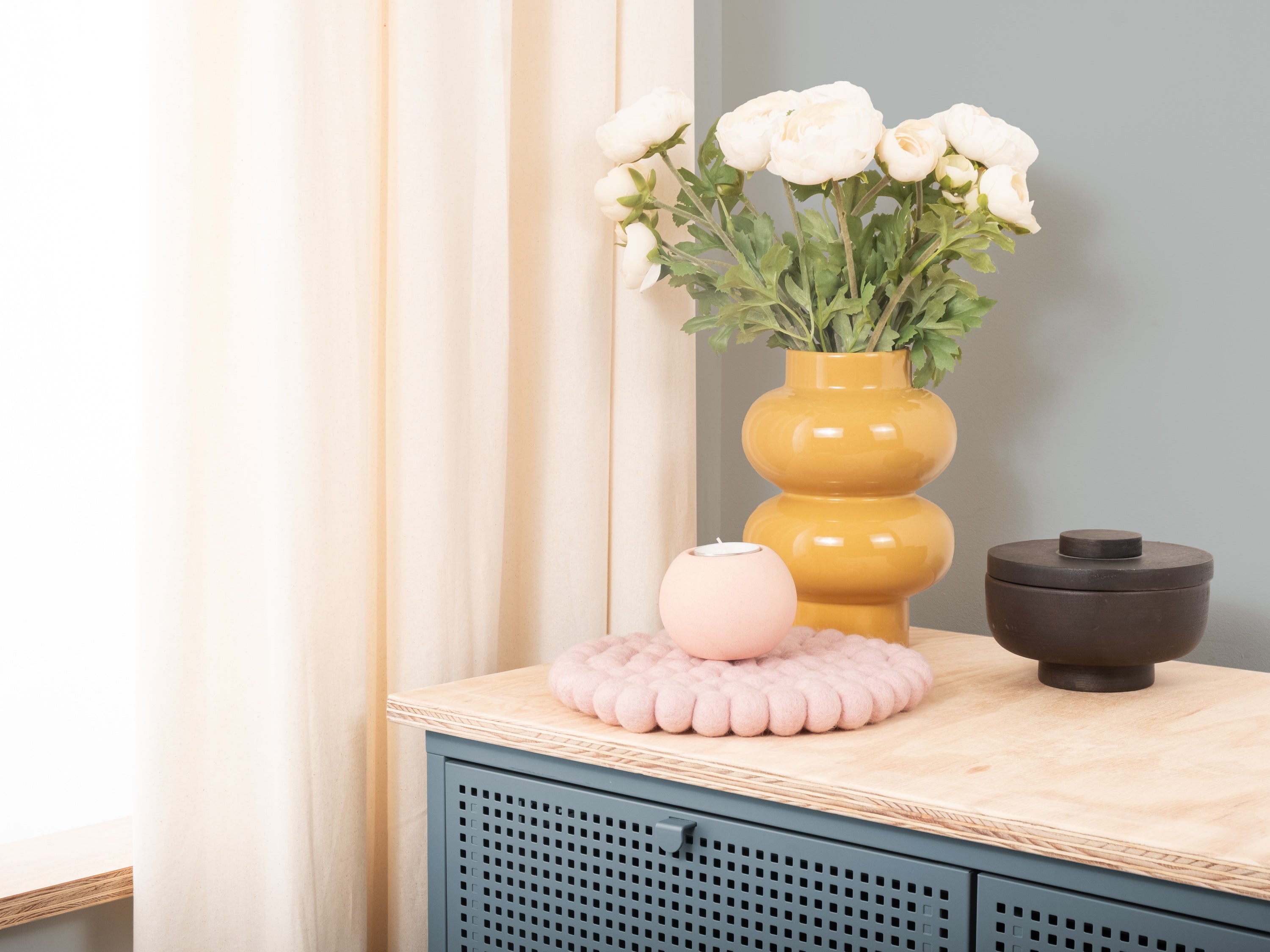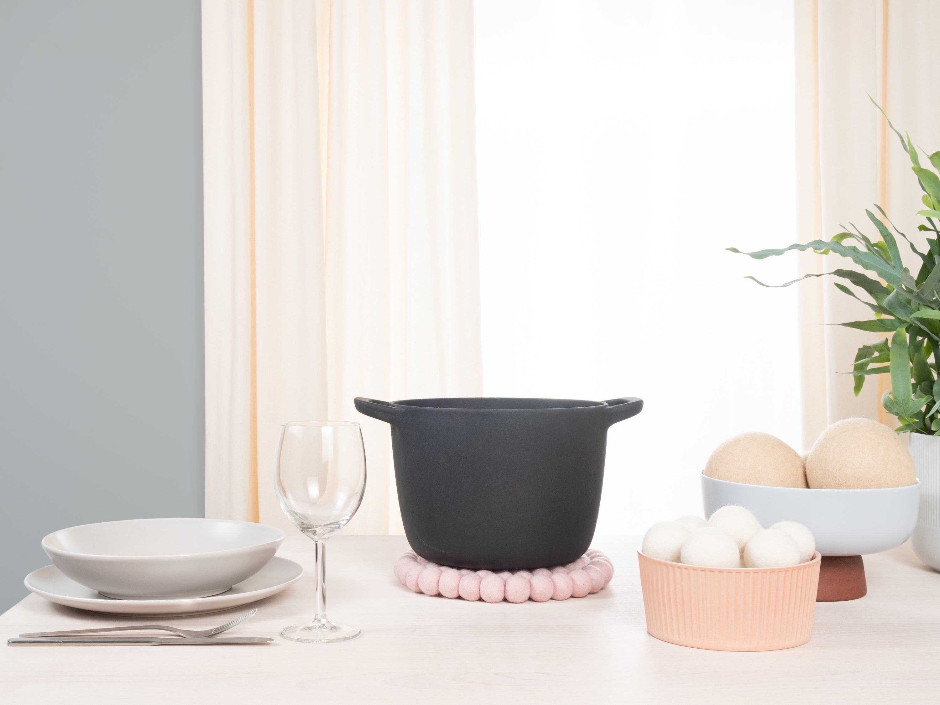 Podstawka Mona w kolorze jasnoróżowym łączy funkcjonalność z uroczym wyglądem. Wytrzymała, odporna na ciepło, wodę i zabrudzenia oraz dwustronna. Wykonana z czystej wełny dziewiczej, ręcznie w Nepalu w uczciwych warunkach.