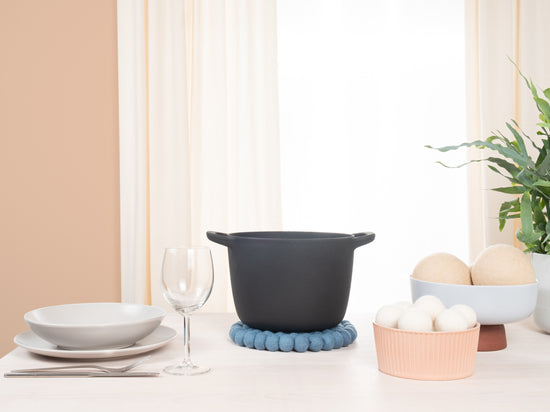 Okrągła, niebieska podstawka pod garnek z czystej wełny dziewiczej | myfelt