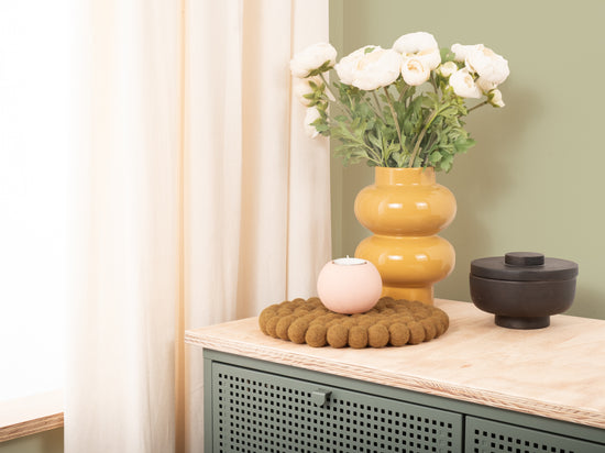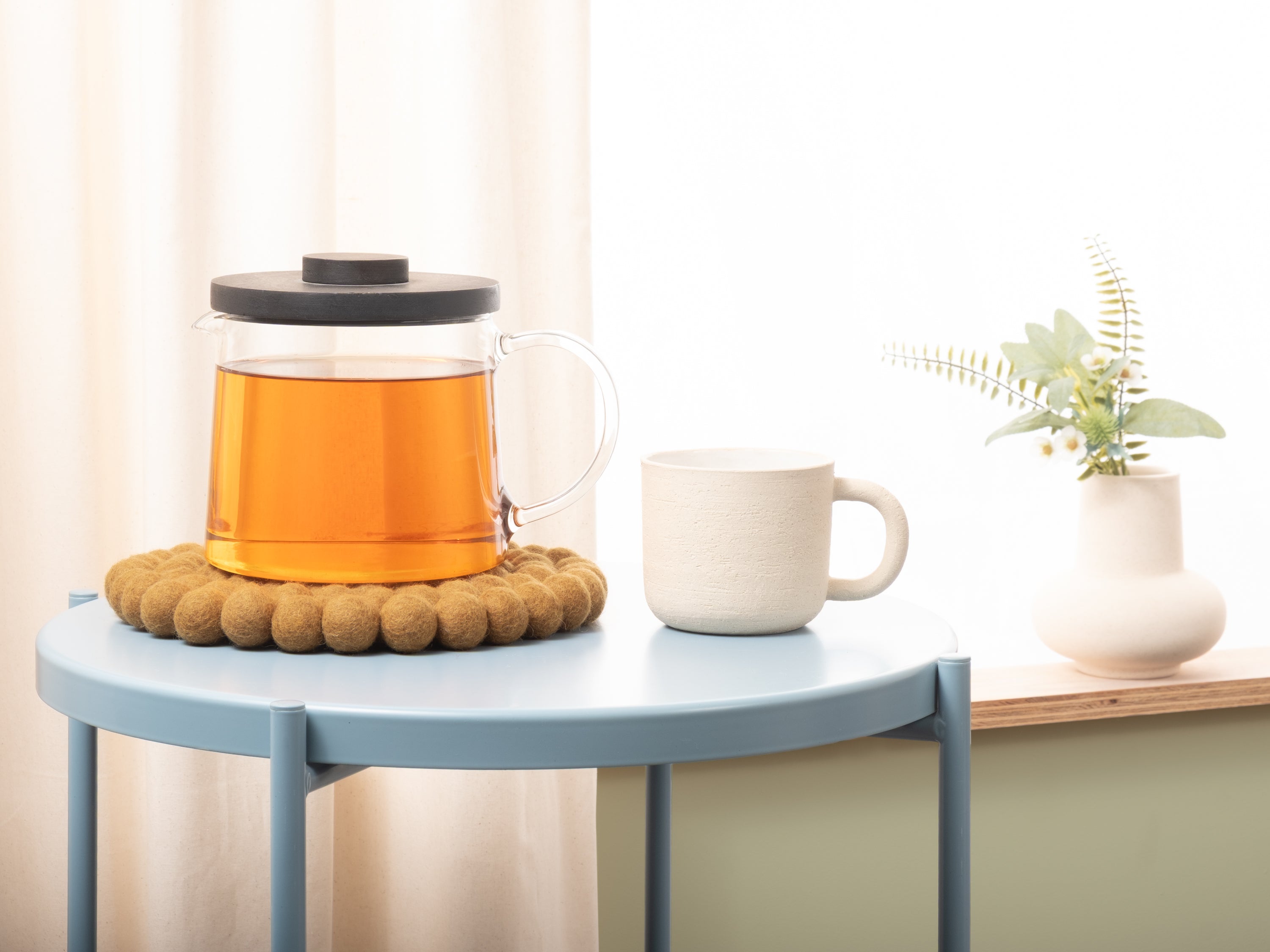 Podstawka Omar w kolorze karmelowym łączy funkcjonalność z uroczym wyglądem. Wytrzymała, odporna na ciepło, wodę i zabrudzenia oraz dwustronna. Wykonana z czystej wełny dziewiczej, ręcznie w Nepalu w uczciwych warunkach.